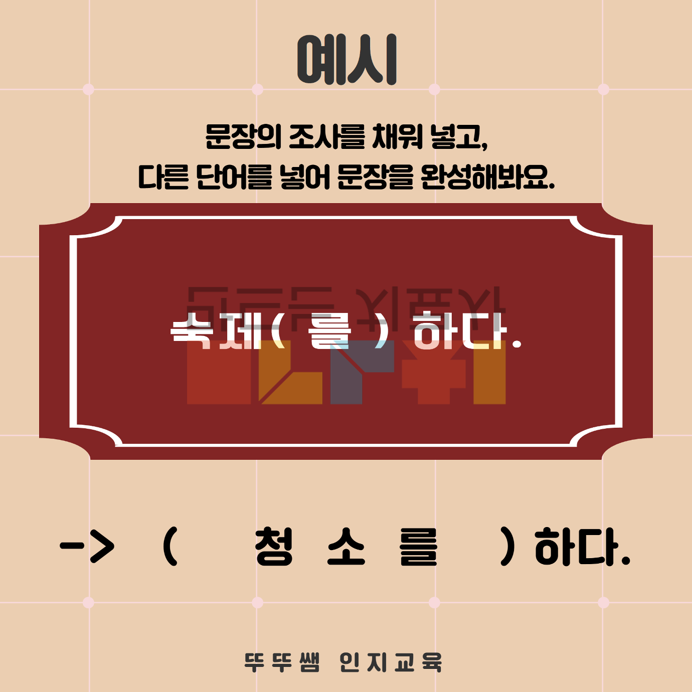 간단 소개 글: 기초 조사 을/를/가/이/에 에 대해 알아보는 시간을 가져 봅니다. 상세 소개 글: 짝을 찾아 매칭 해보고 문장을 따라 소리내어 읽어보며 유창성을 기릅니다. 또한 새로운 문장으로 단어와 조사를 새로 붙여보며 재구성 해보는 시간을 갖습니다. pdf파일, 36페이지(활동 내용은 33페이지)로 구성했습니다. A4용지는 가로세로 상관 없이 출력 가능합니다.