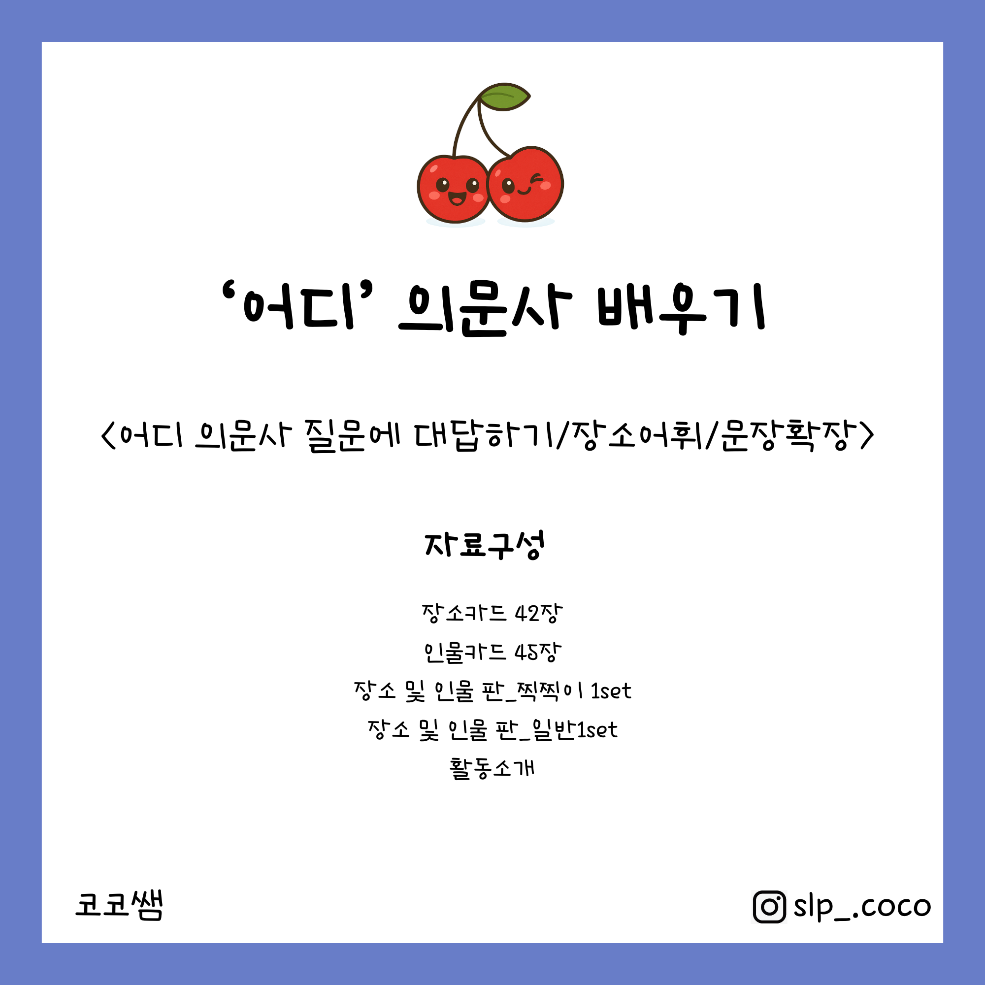 '어디' 의문사를 이해하고 표현하는데 사용할 수 있는 자료입니다.