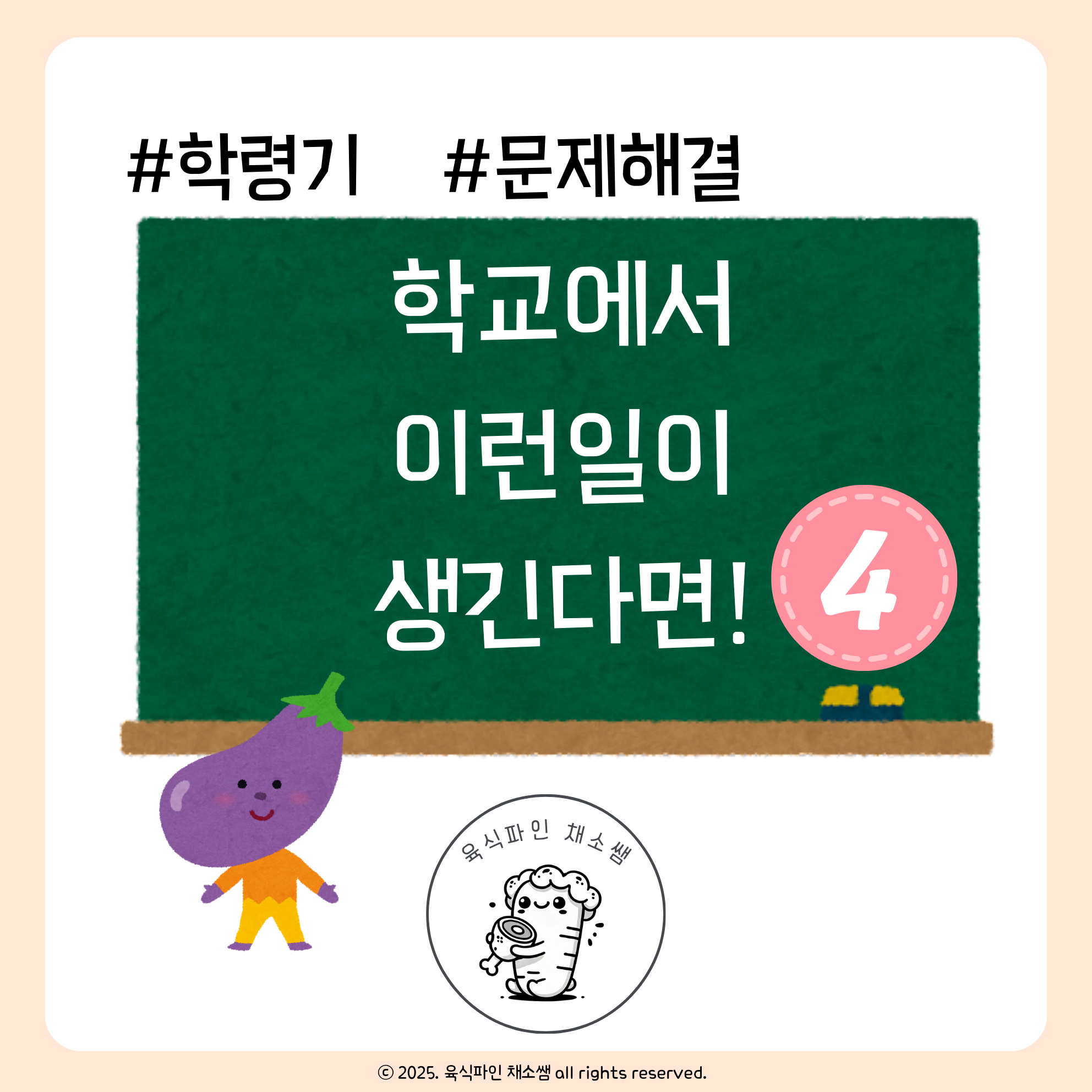 안녕하세요. 육식파인 채소쌤 입니다! 이 교재는 초등학교 저학년 친구들이 처음 학교생활을 하면서 겪을 수 있는 다양한 문제 상황을 이해하고, 스스로 해결할 수 있도록 돕는 교재입니다. 학교라는 새로운 환경에서 친구, 선생님, 규칙과 적응해야 하는 저학년 아이들에게 실질적인 도움을 줄 수 있도록 구성되었습니다.