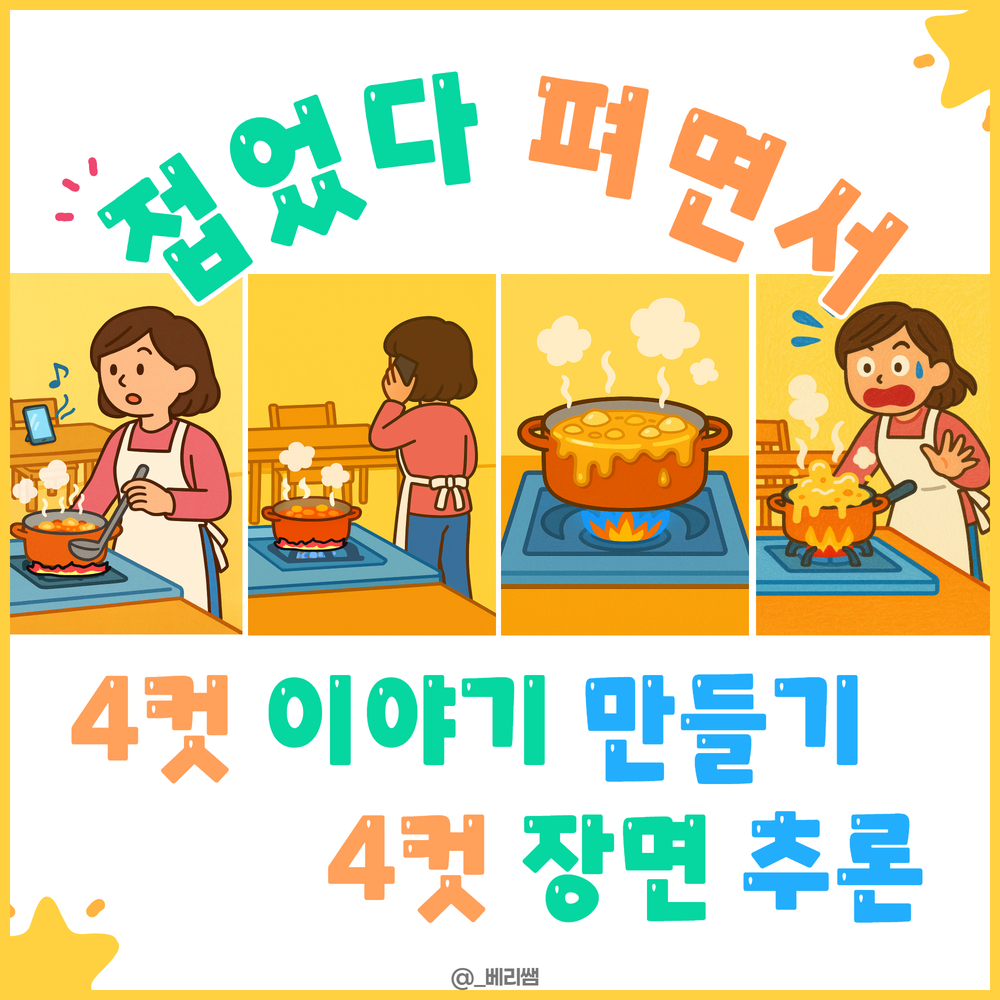 🎀자 료 소 개 🎀 본 자료는 4컷 만화를 기반으로 한 추론적 이야기 구성 학습지입니다. 처음과 끝 장면만 제시하여 아동이 이야기의 중간 내용을 추론하고 그 과정에서 원인과 결과를 파악할 수 있도록 구성 되어 있고 또한 이야기를 순차적으로 한 장면씩 펼쳐보며 다음 전개를 예상하기도 하는 등 다양한 추론 방식을 경험할 수 있도록 구성되었습니다. 접었다 펴는 시각적 장치가 아동의 호기심과 참여를 유도하며, 자연스러운 이야기 구조 이해와 언어표현력을 동시에 강화할 수 있는 중재 도구입니다. 🎀자 료 구 성🎀 사용 안내 페이지 : 5P 접었다 펴면서 활동 : 30P (15가지 이야기) 장면 질문, 장면 쓰기 : 30P 장면 번호 매기기, 이야기 만들어 쓰기 : 15P 총 80P(PDF파일)