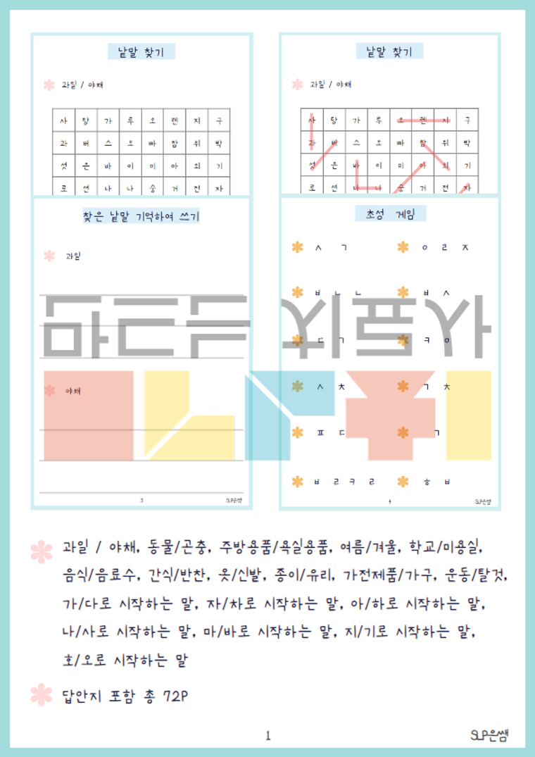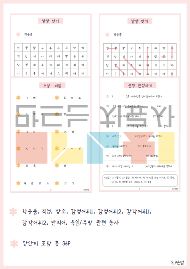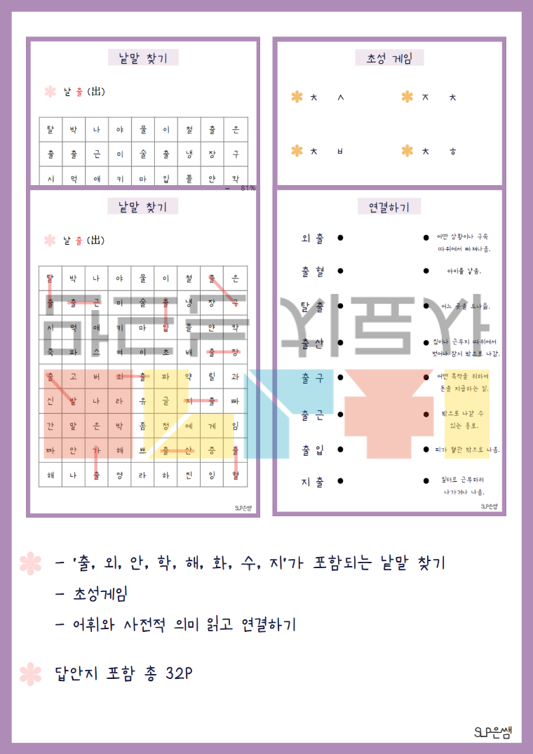 SLP은쌤의 낱말 찾기 종합세트 입니다.