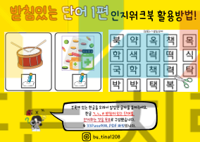 *상세 페이지 소개글 -목표: 한글 학습 -받침 있는 단어 1편 인지워크북은 ㄱ, ㄴ, ㄹ 받침이 있는 단어로 구성했습니다. -본 자료는 쪽수 33, 사이즈 A4 가로, pdf 형식으로 되어있습니다!