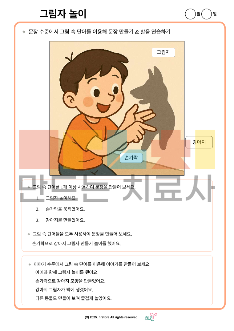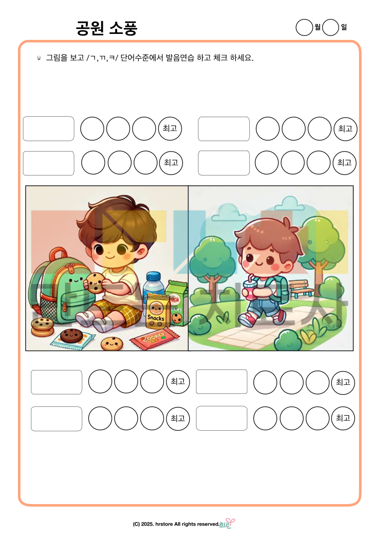 ❤2025년 3월~8월간 월간발음놀이는 매주 무료자료1개, 유로자료1개로 업로드 되었습니다. 모든 자료를 합쳐 음소별 월간 발음놀이가 출판되었어요! AI를 이용해 그림을 생성하고 직접 편집하여 만든 자료 입니다. 꼭 필요하신 분들이 귀하게 여기며 사용해주시길 부탁드려요 :)