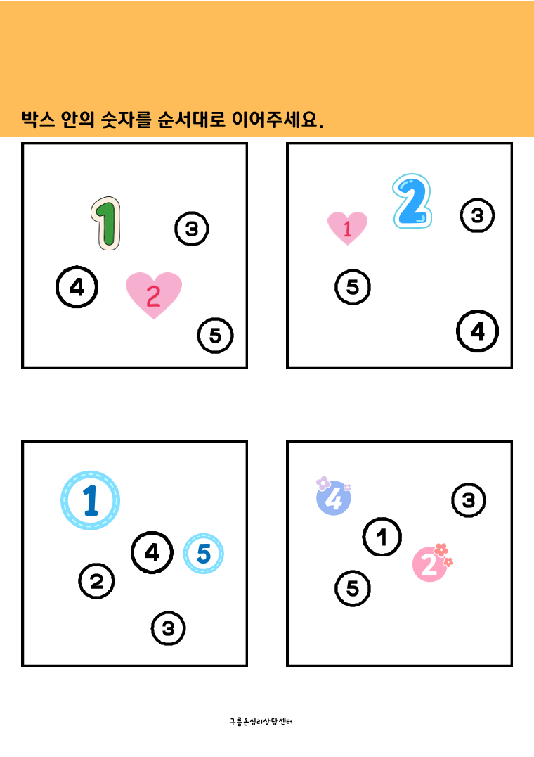 처음 수를 접하는친구들을 위한 다양한 활동입니다. 특히 빠진 수 찾기를 통해 수의 순서화를 정리해 볼 수 있습니다.