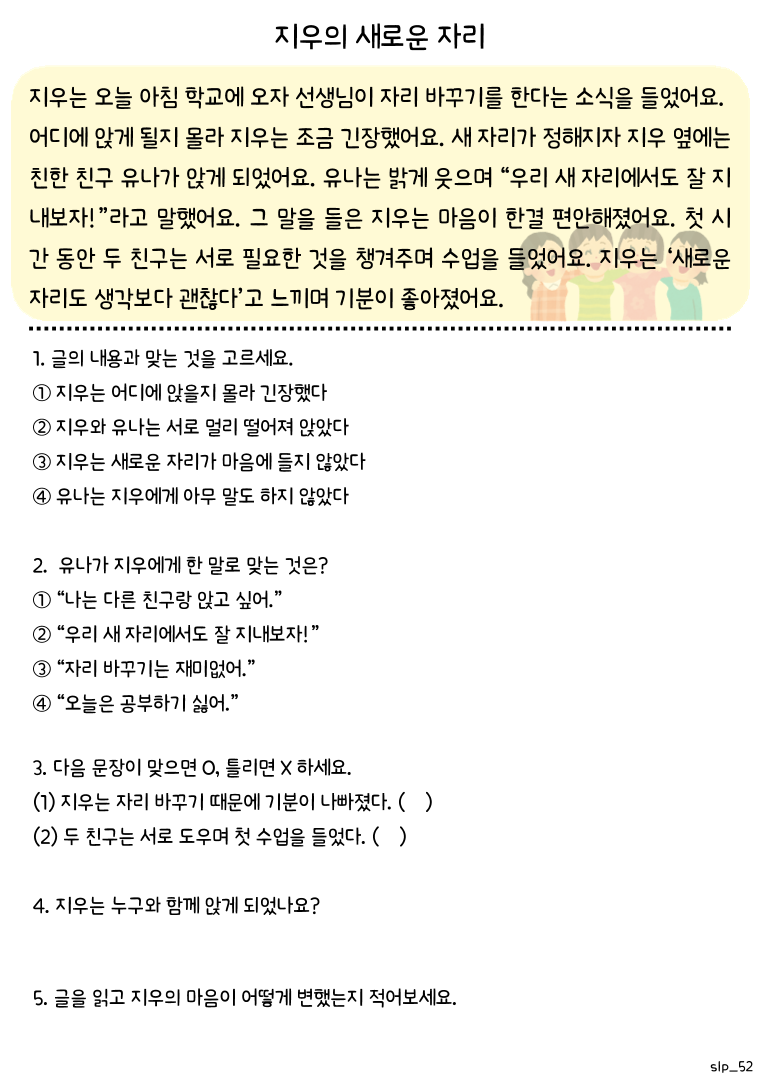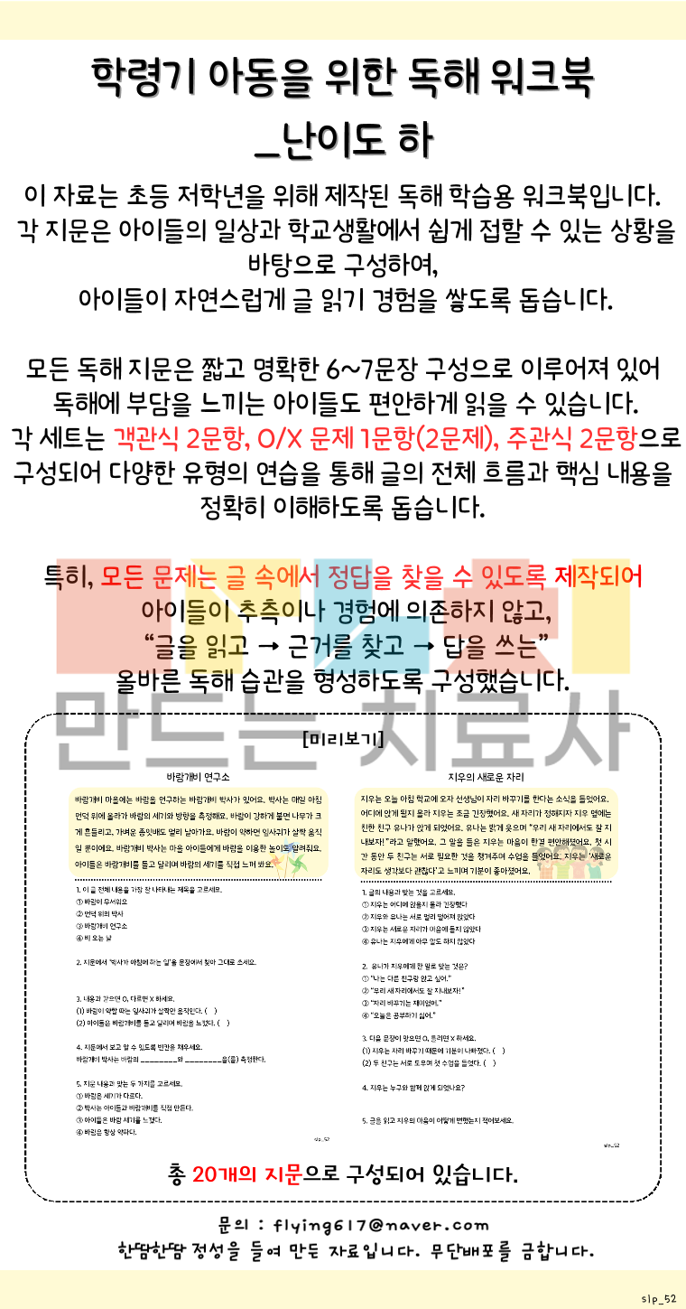 학령기 아동을 위한 독해 워크북_난이도 하