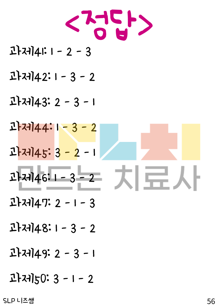 상품 형태 : PDF 파일 (구매 후 다운로드) 제작 : SLP 니즈쌤 총 페이지 수 : 56