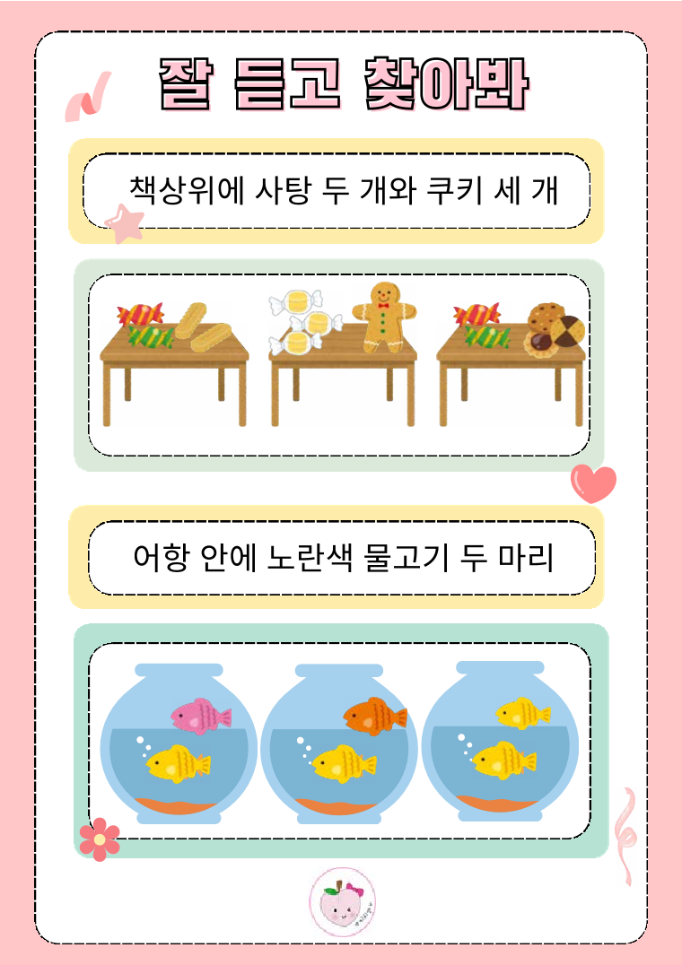 안녕하세요? 피치쌤입니다~! 이번 자료는 청각적 이해력 및 기억력 증진에 도움이 되는 내용으로 구성되어 있습니다~! 6페이지까지는 비교적 쉬운 내용이라서 대상자의 특성에 맞게 활용하시면 됩니다. 총 25P로 구성되어 있으며, 집중력 증진 및 정보처리 능력에도 도움을 줄 수 있습니다. 현장에서 유용하게 쓰이면 좋겠습니다. 문의사항이나 수정사항은 인스타 youandi_0022로 DM주세요. 감사합니다~!