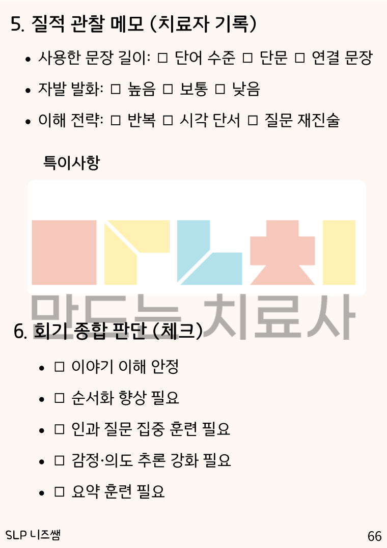 상품 형태 : PDF 파일 (구매 후 다운로드) 제작 : SLP 니즈쌤 총 페이지 수 : 67