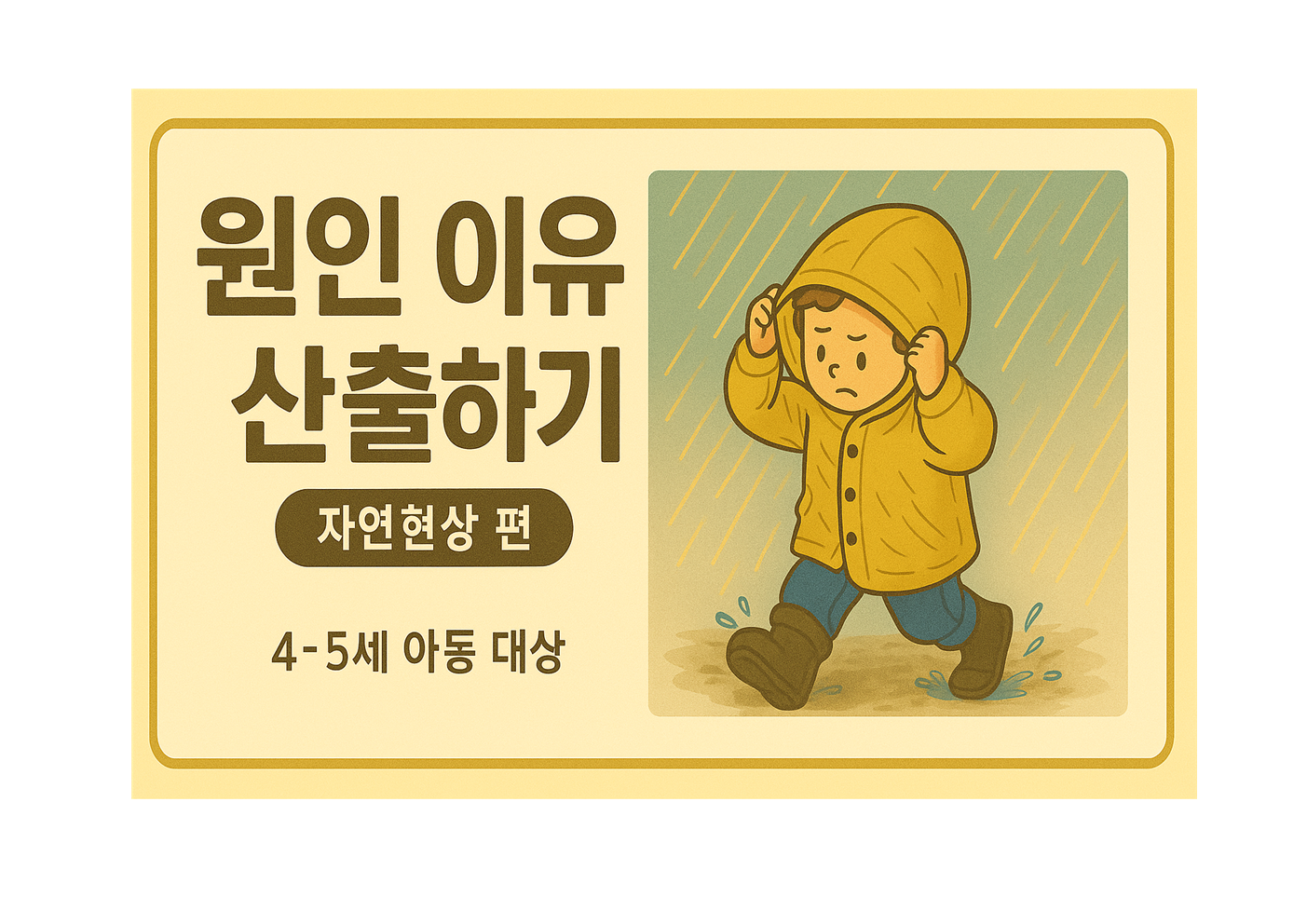 ■ 총 21개의 그림으로 구성되어, 한 현상만 설명하고 끝나는 것이 아니라 자연현상 안에서 다양한 상황을 반복적으로 연습할 수 있습니다. ■ 대상자 1. 원인–결과 이해가 어려운 아동의 자연현상 학습을 위한 시각자료 2. 일상적인 원인 질문에는 반응하지만, 새로운 상황에서는 이유 설명이 어려운 아동을 위한 그림 기반 추론 자료 3. 자연현상 이유 설명에서 반복적으로 막히는 아동 “복잡한 설명 없이, 그림만 보고도 이유를 말하게 만드는 자료” ☞ 그림 안에 추론을 도와주는 단서들이 포함되어 있어, 색깔펜 등으로 표시하며 지시적 단서를 제공하면 원인에 맞는 답을 자연스럽게 유도할 수 있습니다.