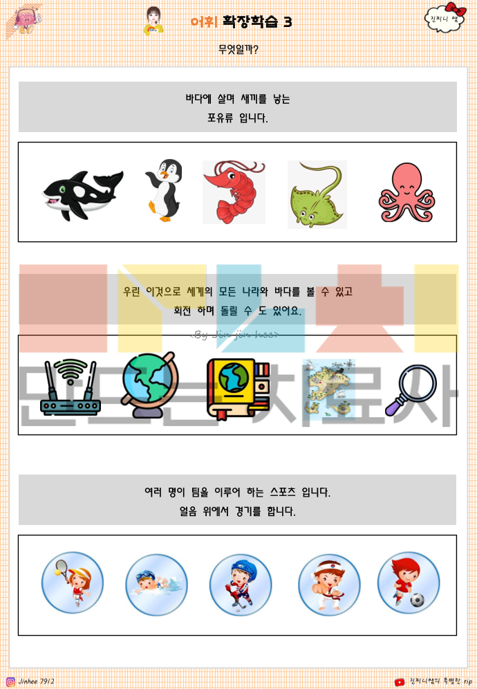 🔍 이 책으로 알 수 있는 것은 1. 어휘 이해 수준 -단어를 암기하는지, 의미를 이해하고 있는지 -같은 단어라도 상황에 따라 다르게 쓰는 이해력이 있는지 -추상 어휘(감정, 상태, 비교 개념 등)를 그림·문맥으로 연결할 수 있는지 2. 개념화 능력 -단어를 범주로 묶고(분류) 공통점을 찾을 수 있는지 -비슷한 말·반대되는 말의 차이를 인식하는지 -하나의 단어를 여러 맥락에서 확장해 생각할 수 있는지 3. 사고력 및 인지 확장 -단어를 통해 원인–결과, 전후 관계를 이해하는지 -상황 그림·문장을 보고 추론적 사고가 가능한지 -단어를 단서로 생각을 넓혀 문장으로 표현할 수 있는지 4. 언어 표현 능력 -단어를 단독으로 말하는 수준인지 -단어를 사용해 문장으로 설명할 수 있는지 -자신의 생각·느낌을 말로 조직화할 수 있는지 5. 생활 적용 가능성 -일상에서 자주 쓰이는 어휘를 상황에 맞게 사용하는지 -감정·요청·설명 등을 말로 표현할 수 있는 기반이 되는지 -학교·가정·또래 관계에서 의사소통의 기초 역할을 하는지 ✨ 한 줄 정리 (책의 핵심) 이 책은 ‘말을 아는 아이’가 아니라, ‘말로 생각하고 설명할 수 있는 아이’를 만드는 인지·어휘 학습서입니다. ^^