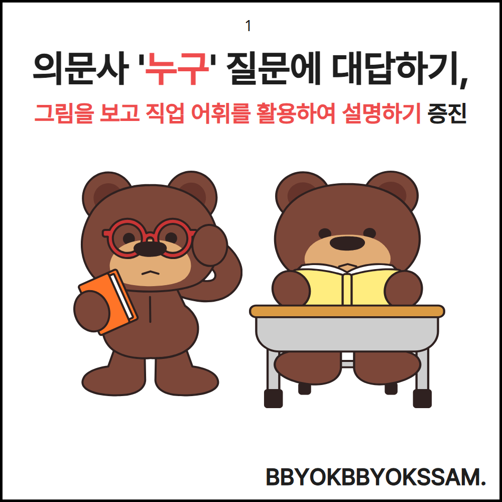 의문사 누구 질문에 대답하기, 직업 35가지, 직업 어휘를 활용하여 구문으로 설명하기 증진을 목표로 제작하였습니다.