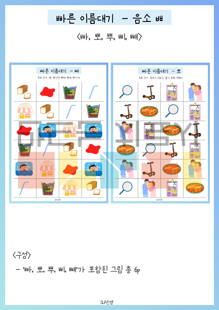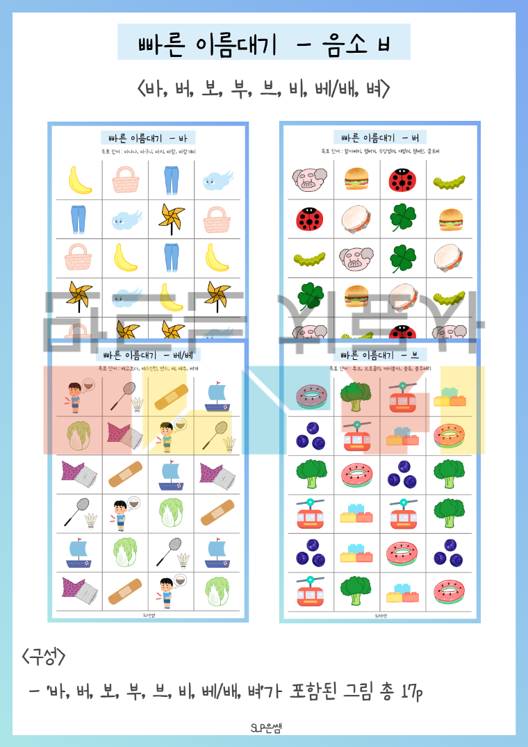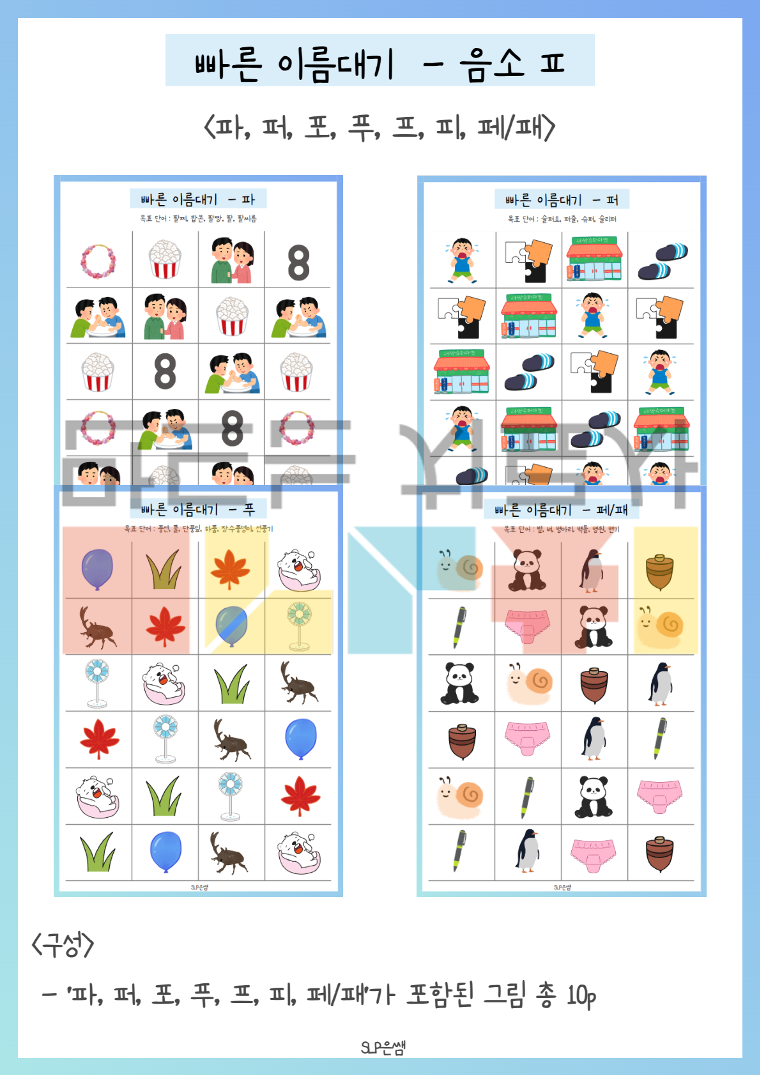 SLP은쌤의 빠른 이름대기3 세트(음소 ㅂ,ㅍ,ㅃ) 입니다.