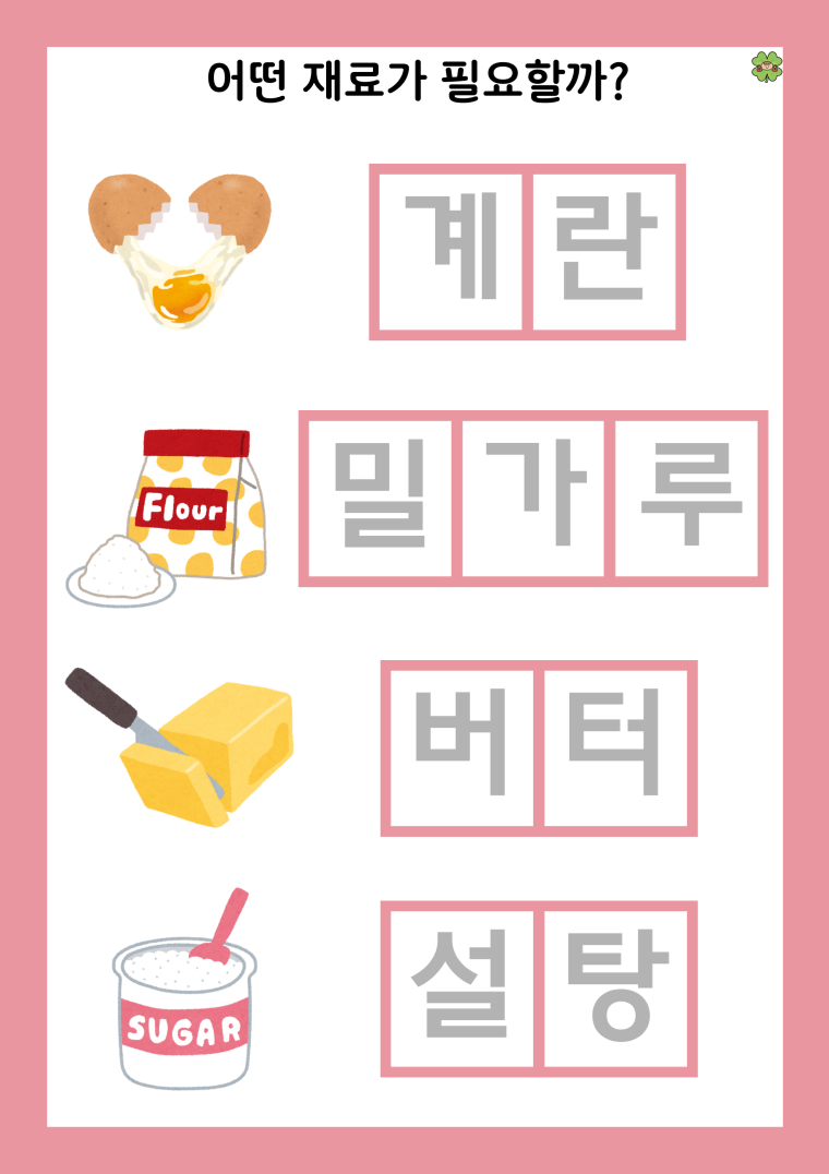 🎯 [다복쌤네 컵케이크 가게] 활동 목표 (무료 나눔 ver.) 1. 실생활 맥락에서의 수량 개념 및 나눗셈 기초 원리 습득 - 컵케이크를 친구들에게 나누어 주는 상황을 통해 '전체'를 '부분'으로 공평하게 배분하는 나눗셈의 기초 개념을 이해하고 수량 추론 능력을 기른다. 2. 시·청각 단서를 활용한 대상 추론 및 인출 능력 강화 - "음~ 달콤해!", "나는 빨간색을 좋아해"와 같은 감각적/기호적 단서를 듣거나 읽고, 여러 개의 컵케이크 중 조건에 맞는 정확한 대상을 변별하여 찾아낼 수 있다. 3. 절차적 사고를 통한 실행 기능 향상 - 컵케이크가 만들어지는 순서를 파악하고 재구성하는 과정을 통해, 목표를 달성하기 위한 단계별 실행 계획을 이해하고 논리적 사고력을 높인다. 4. 창의적 자기표현 및 언어적 확장 능력 배양 - 자신이 만든 컵케이크의 맛과 특징을 상상하여 색칠하고, 이를 언어로 표현해보는 활동을 통해 미적 감각과 구어 표현력을 동시에 함양한다. 💡 직관적인 활동 구성 : "재료 찾기 → 만들기 순서 → 나누기(수학) → 주문하기(추론) → 색칠하기"까지, 한 권의 활동지로 인지와 창의성을 동시에 잡을 수 있습니다. 💡 추천 수업: 수 개념이 필요한 아동, 단서를 듣고 맞추는 변별 훈련이 필요한 아동, 즐거운 놀이 중심의 인지 수업을 원하는 선생님.