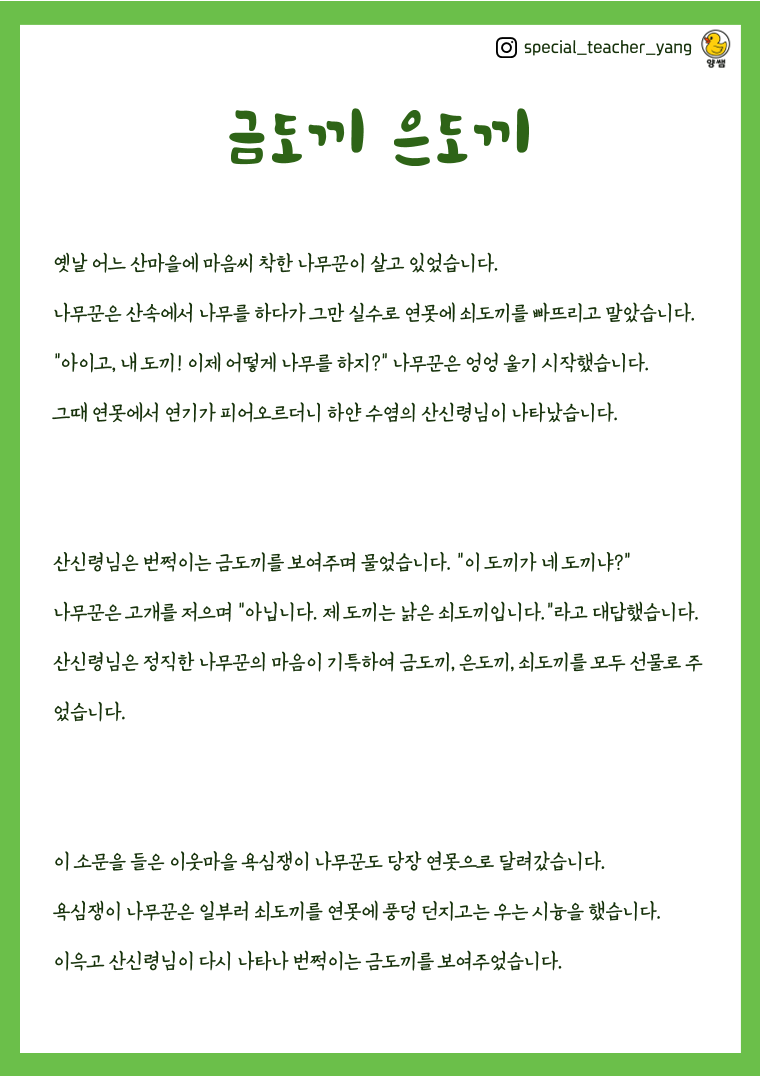 ★ 초등학교 저학년 수준의 동화를 읽고 상황 파악 및 등장인물의 감정을 파악하는 활동입니다. ★ 상황 인지의 첫걸음! 덥썩 시리즈로 함께 하세요!