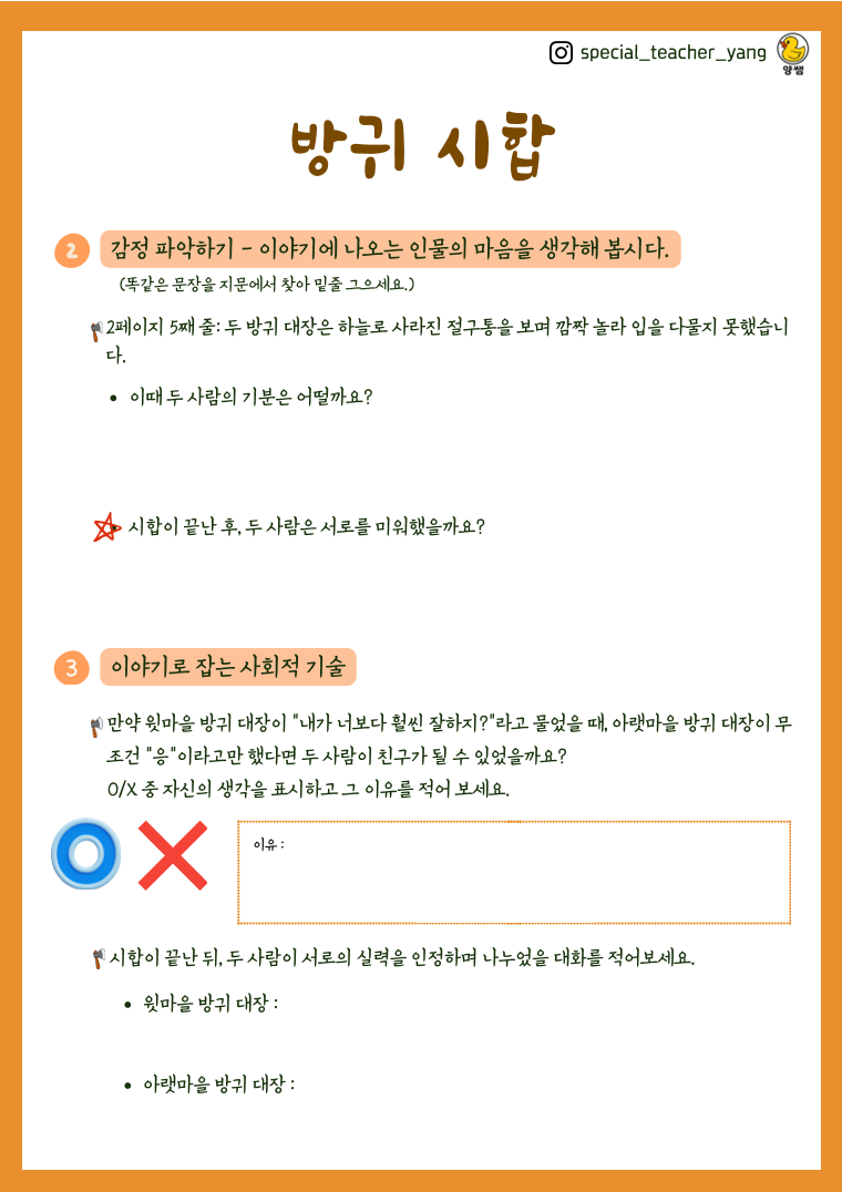 ★ 초등학교 저학년 수준의 동화를 읽고 상황 파악 및 등장인물의 감정을 파악하는 활동입니다. ★ 상황 인지의 첫걸음! 덥썩 시리즈로 함께 하세요!