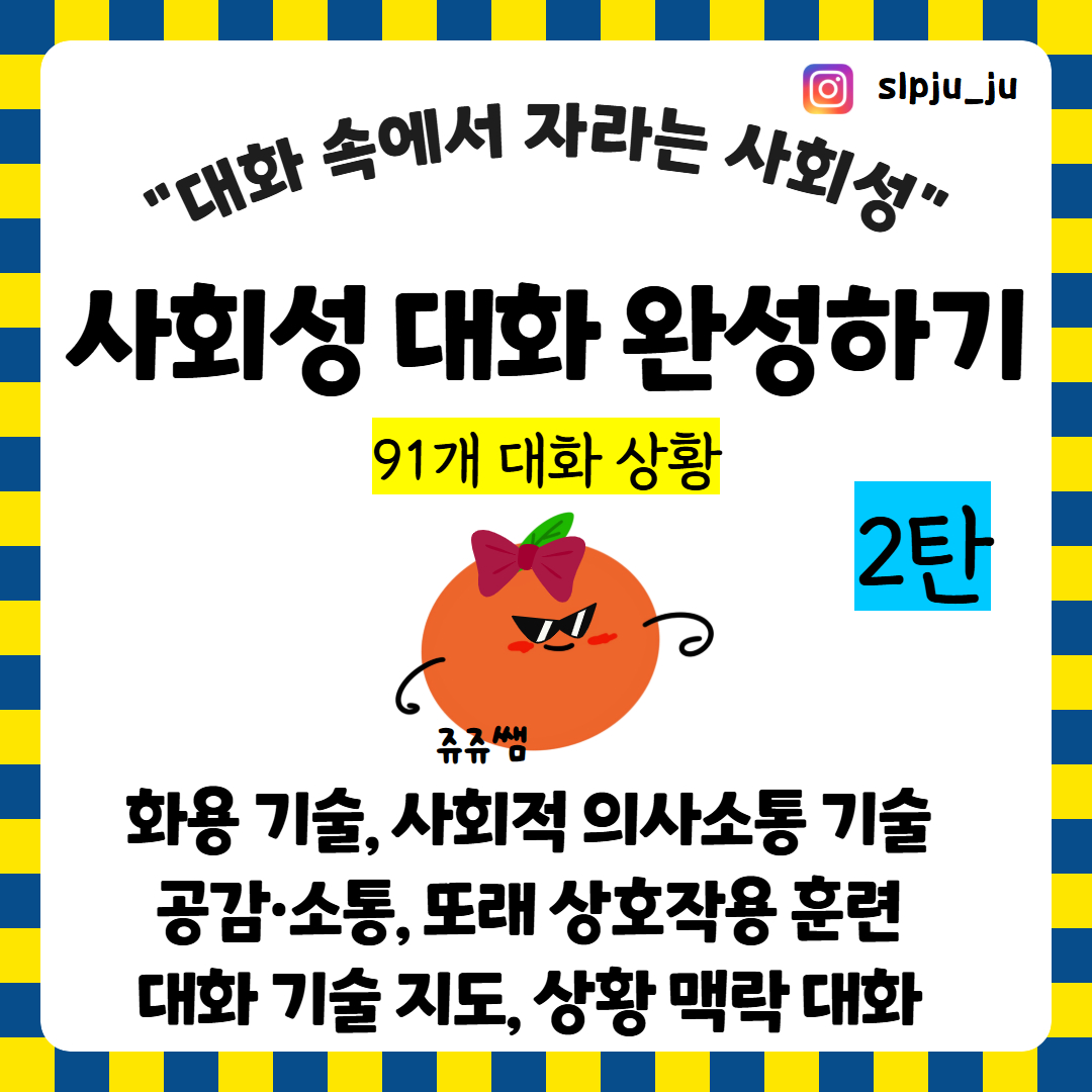 안녕하세요 쥬쥬쌤입니다. 우리 아이, 친구랑 무슨 말을 해야 할지 몰라요. 아이들이 실제 상황을 구체적으로 상상하며 말하기를 연습할 수 있도록 구성되어 있습니다. 친구와 나누는 자연스러운 대화를 직접 완성하며 말하기 연습을 할 수 있어요.
