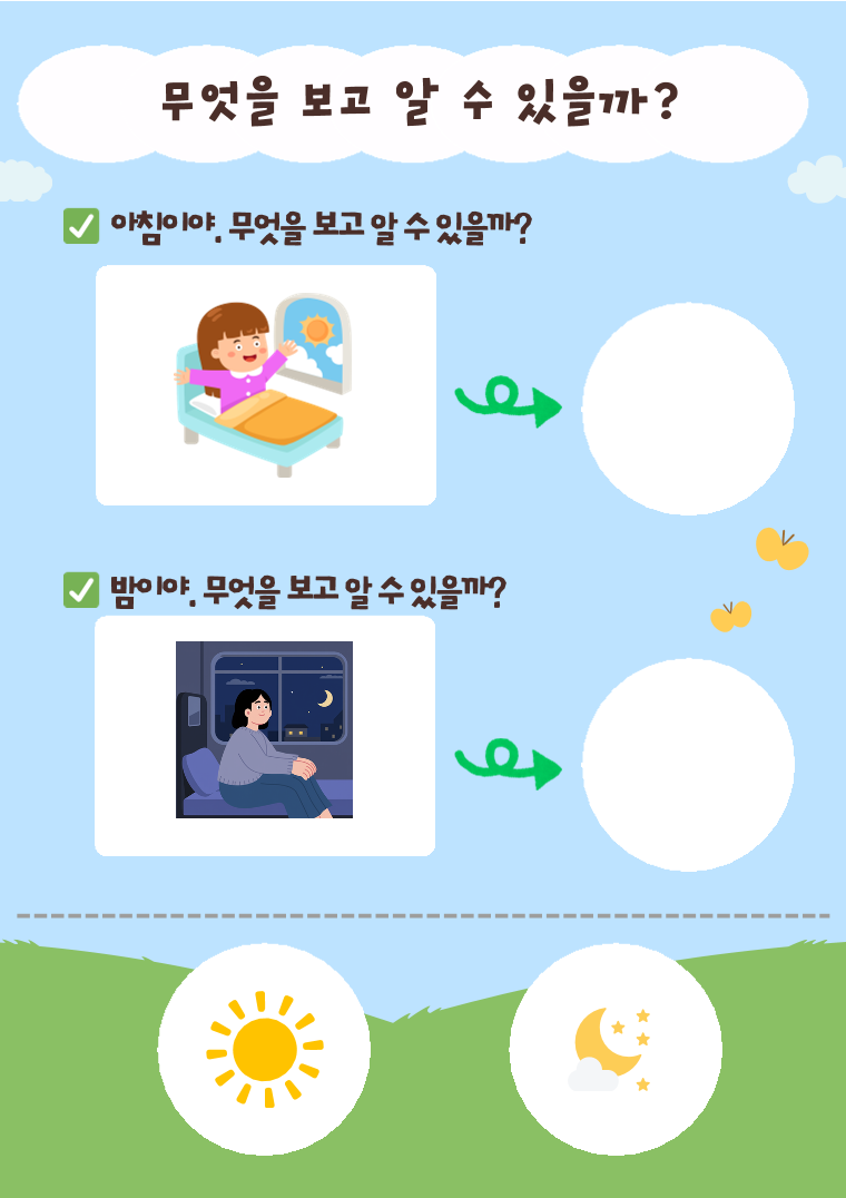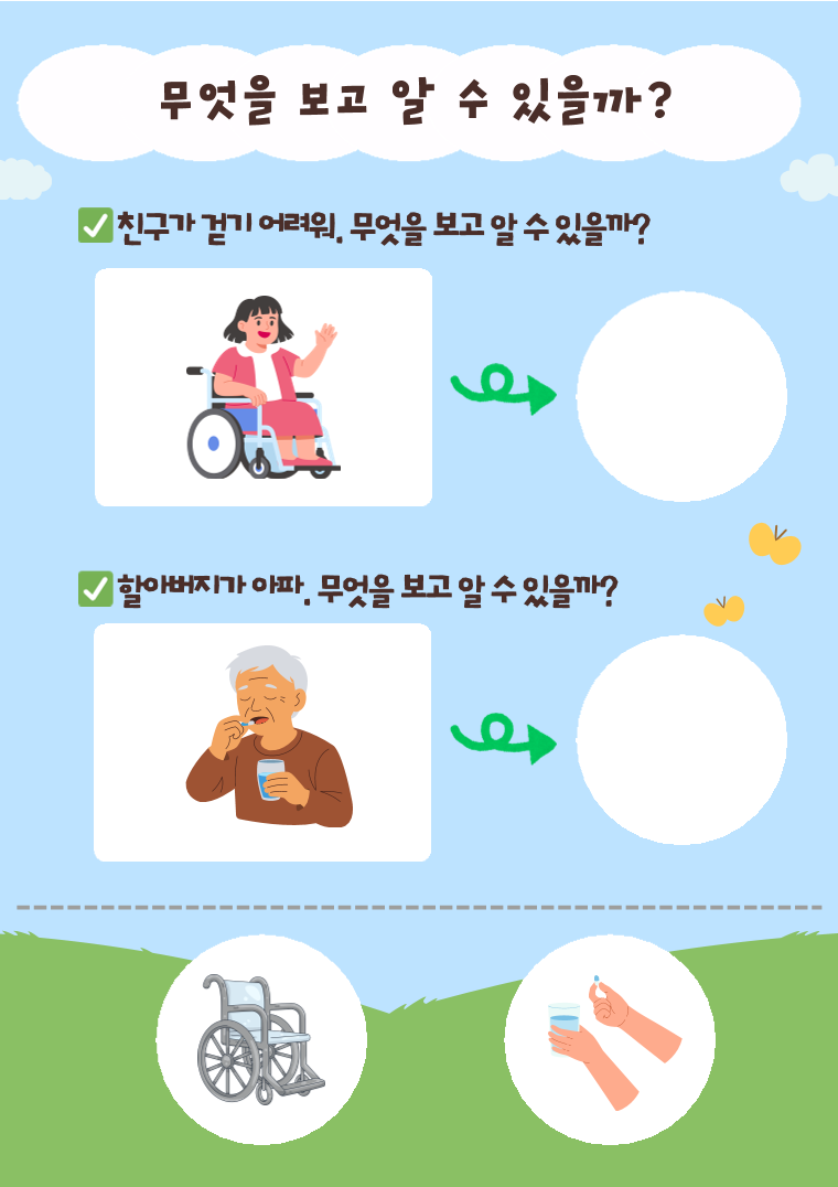 <활동 목표 및 효과> 목표 그림 속 단서를 보고 상황을 추론하는 능력(단서 기반 추론)을 향상한다. 상황과 관련된 핵심 단서를 찾아 말로 설명할 수 있다.