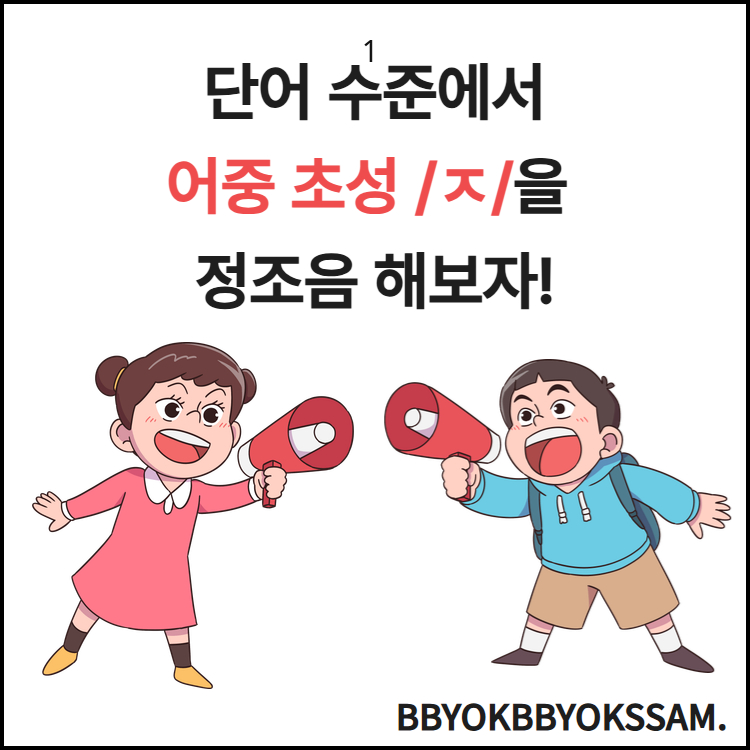 단어 수준에서 어중 초성 ㅈ을 정조음 하는 것을 목표로 제작하였습니다. 맨 앞에는 보드게임으로 3페이지 정도 들어 있고, 그 후 부터는 목표음소 5가지 중 색깔이 똑같은 것 2개 찾아서 2번씩 정조음을 목표로 지도해주시면 됩니다.