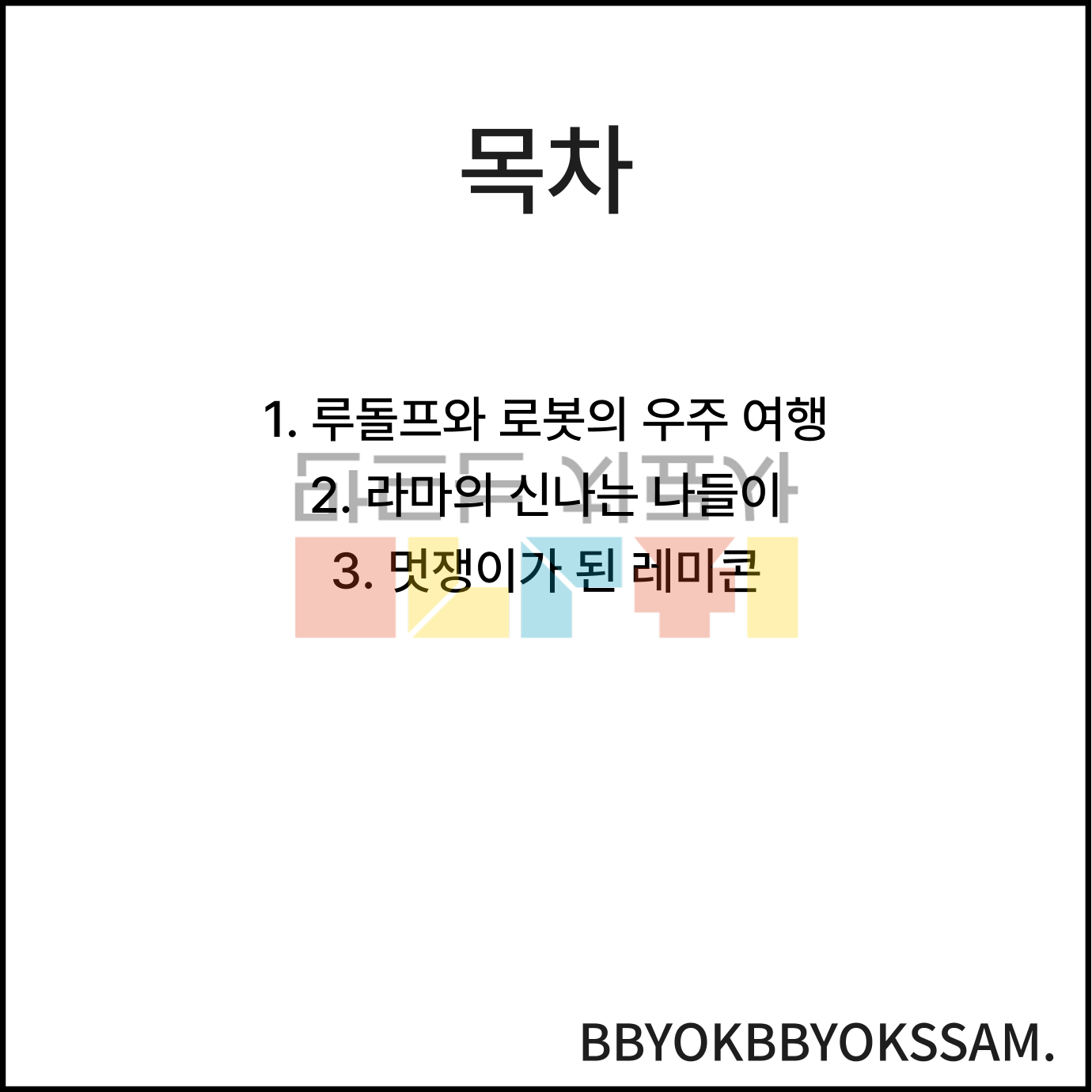어두초성 /ㄹ/ 이야기 3편을 제작하였습니다. 1이야기 당 6장면으로 구성되어있습니다.