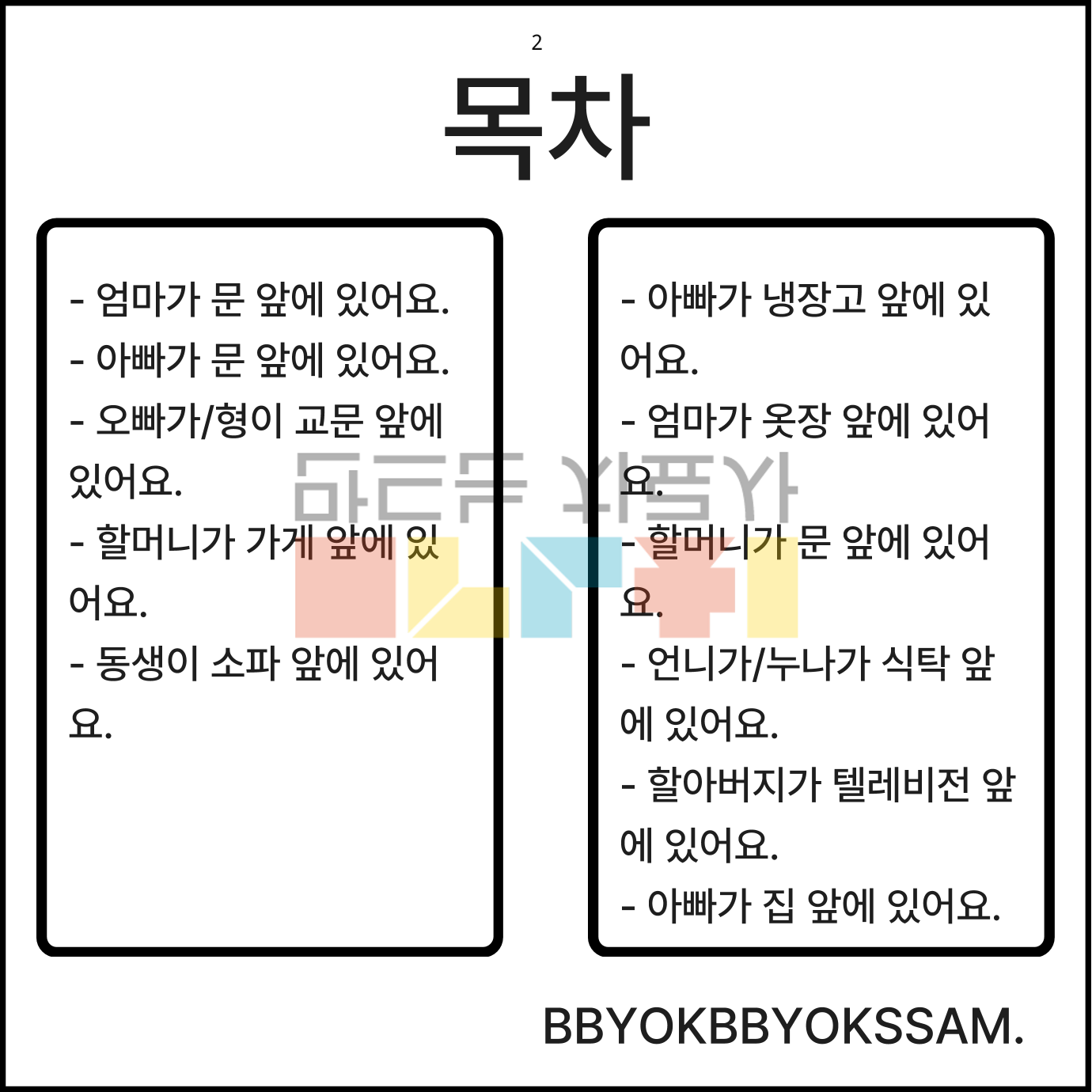 위치부사어 앞 11장면으로 구성되어있습니다.
