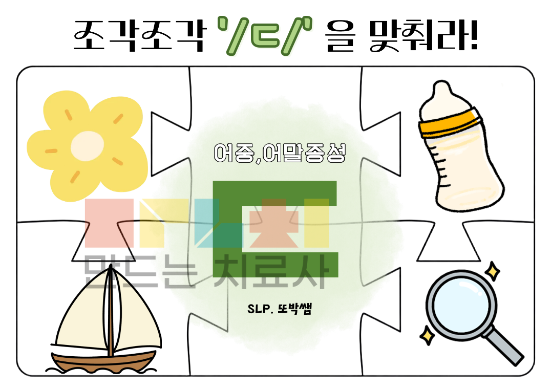 안녕하세요 또박쌤입니다! 어중종성과 어말조성 ㄷ 의 조음이 어려운 대상자들을 위해 제작하였습니다. 퍼즐과 숨은 그림 찾기를 통해 즐겁게 연습해보세요!