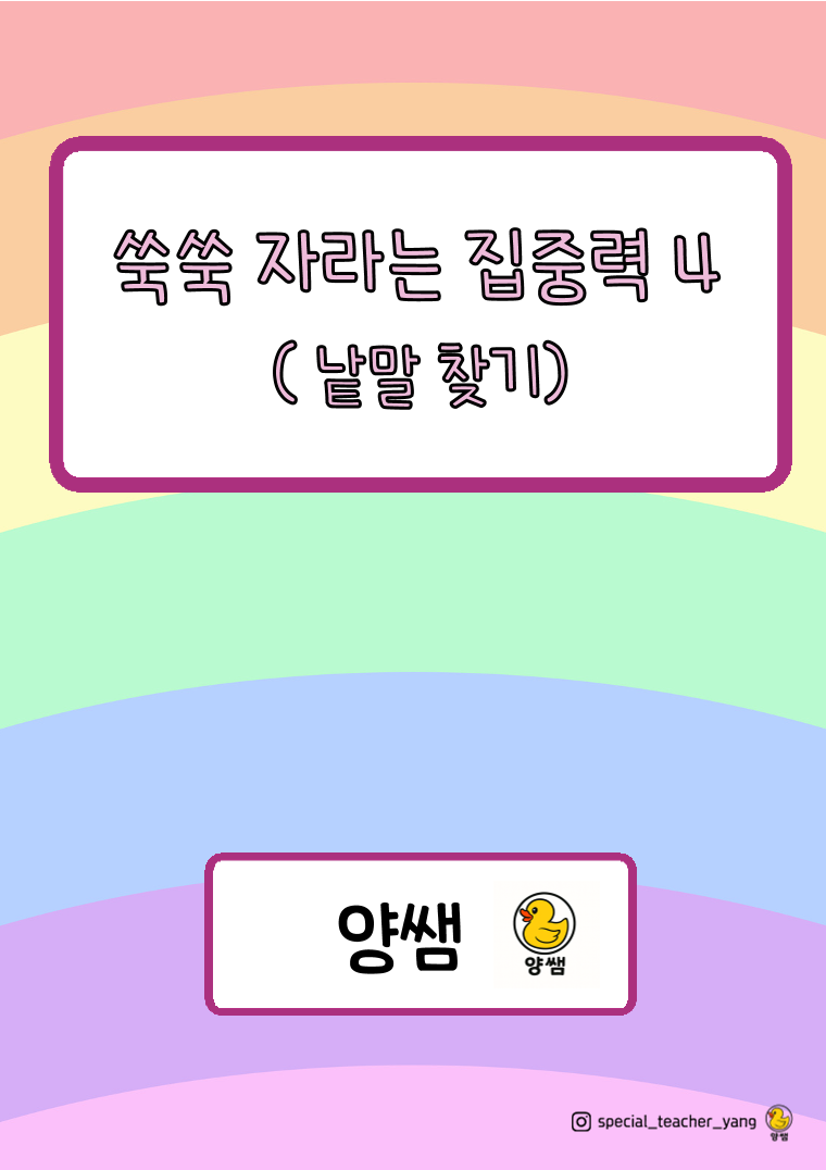 주의집중 향상을 위한 워크북입니다. 한글을 아는 유치원~초등학생부터 사용 가능합니다.