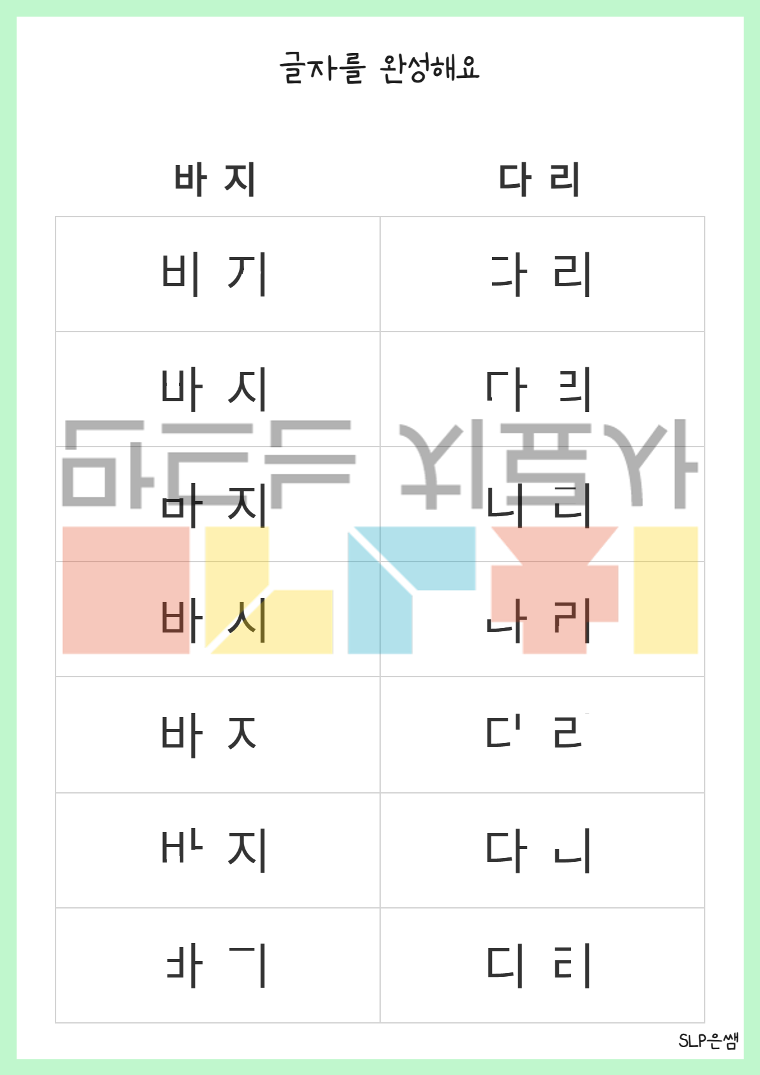 SLP은쌤의 글자를 완성해요 입니다.