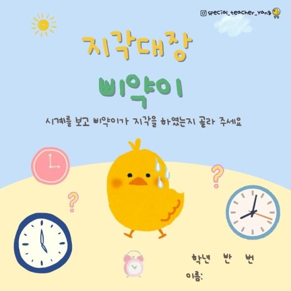 지각쟁이 삐약이(5분단위 시계 읽기 및 ~분 전 시계 읽기)