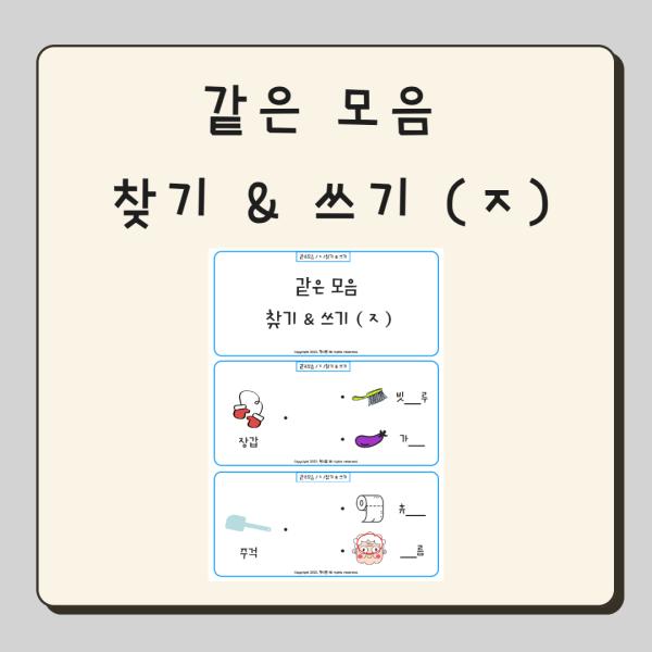 같은 모음 찾기&쓰기 (ㅈ)