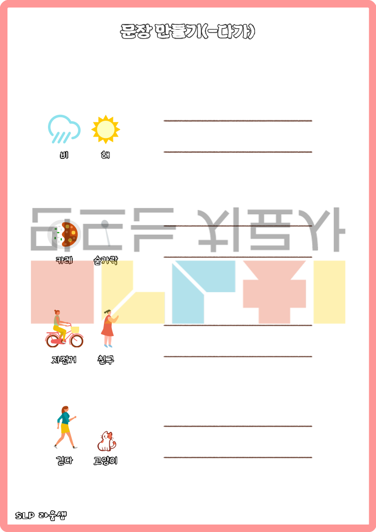 <복문지도프로그램-1~5권시리즈>는 총 9가지의 기능어를 익히고, 복문 지도를 위한 다양한 프로그램으로 구성되어있습니다. <1권>에서는 연결어미 ~서, ~면서, ~고를 익히고, <2권>에서는 -려고, -는데, <3권>에서는 -면, -때문에, <4권>에서는 -다가, -한 다음에, <5권>에서는 -하기 전에를 익히고, 문법오류 판단 및 수정(9가지 문법에 대한) 활동으로 이루어져있습니다.