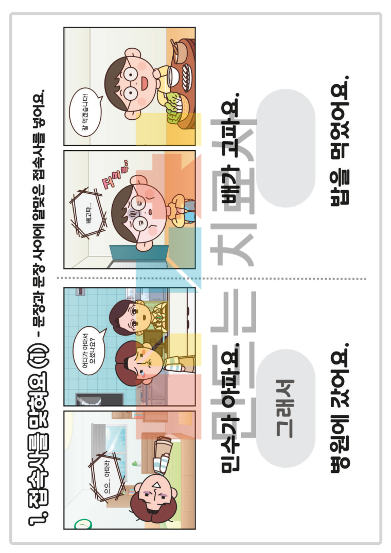 만화 그림으로 구성된 2컷 만화 상황카드가 담겨있습니다. 이야기 카드로 접속사(그래서, 그리고, 그러나, 그런데)를 배우고 순서 맞추기 놀이를 하며, 대사가 없는 카드를 보고 이야기를 직접 만드는 화용언어활동을 할 수 있습니다. 1. 접속사를 맞혀요 x20장 - 접속사를 맞혀요(1): ‘그래서’ x5장 - 접속사를 맞혀요(2): ‘그리고’ x5장 - 접속사를 맞혀요(3): ‘그러나’ x5장 - 접속사를 맞혀요(4): ‘그런데’ x5장 2. 상황카드 말풍선.ver - 40가지 2컷 이야기 카드 구성 - 이야기 카드로 어떤 상황인지 파악하는 질문을 하고 순서 맞추기 놀이를 해요. 3. 상황카드 빈칸.ver - 이야기 카드의 말풍선에 상황에 맞는 대사를 적어 보고 이야기를 만들어보아요.