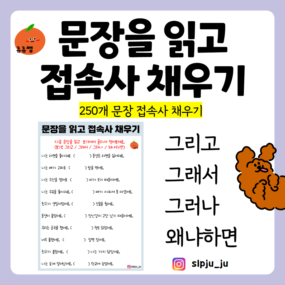 안녕하세요 쥬쥬쌤입니다. 250개 문장 접속사 채우기 문장 이해, 접속사 이해 및 표현