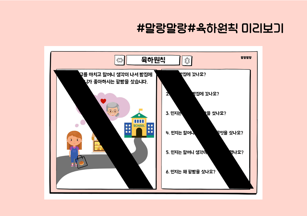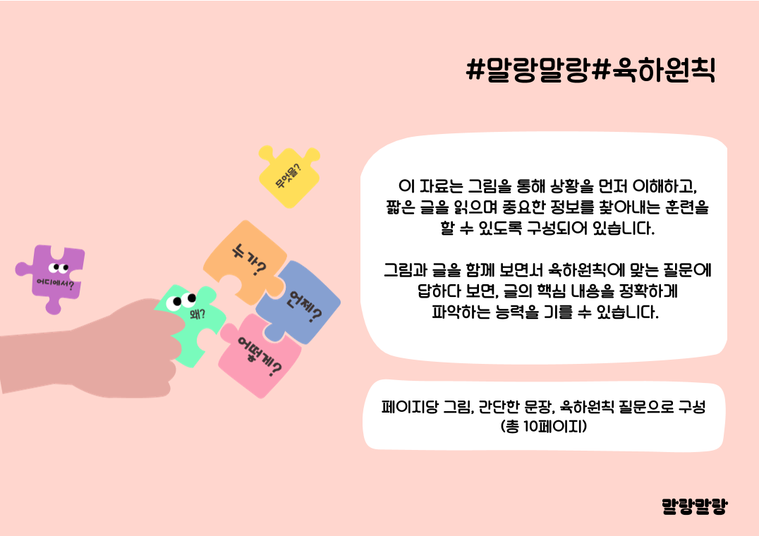 우리 주변에서 볼 수 있는 장면과 간단한 문장을 읽으며, 육하원칙에 따라 내용을 파악하는 연습을 해보세요.