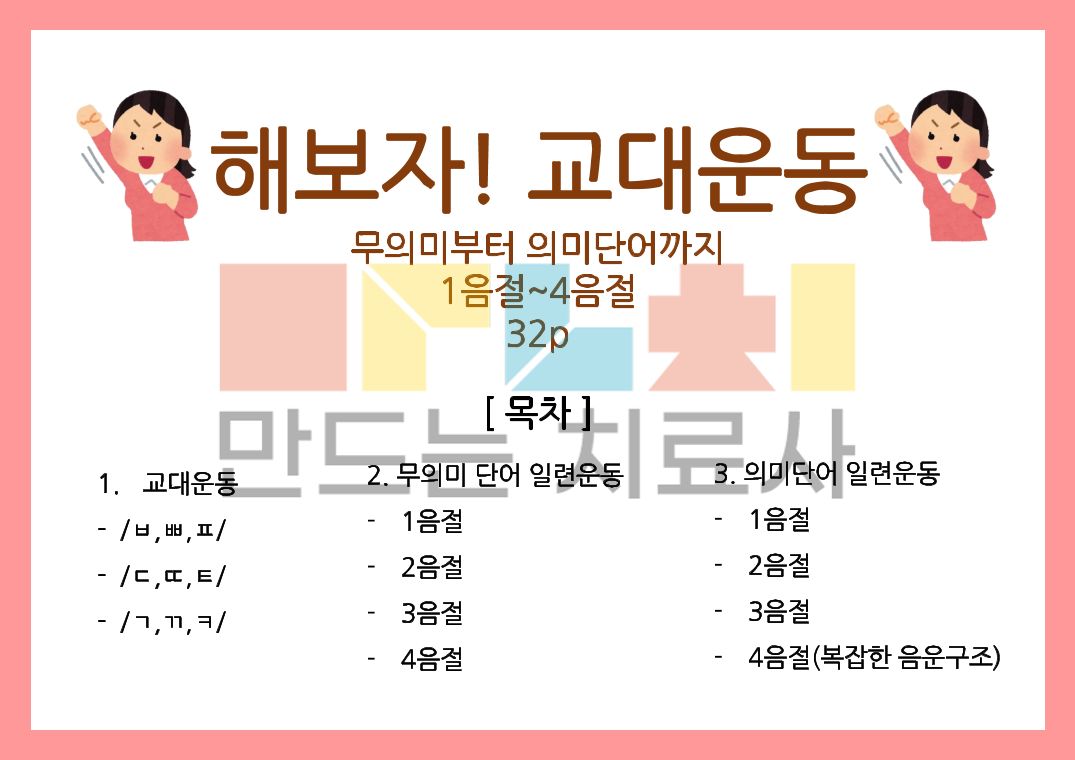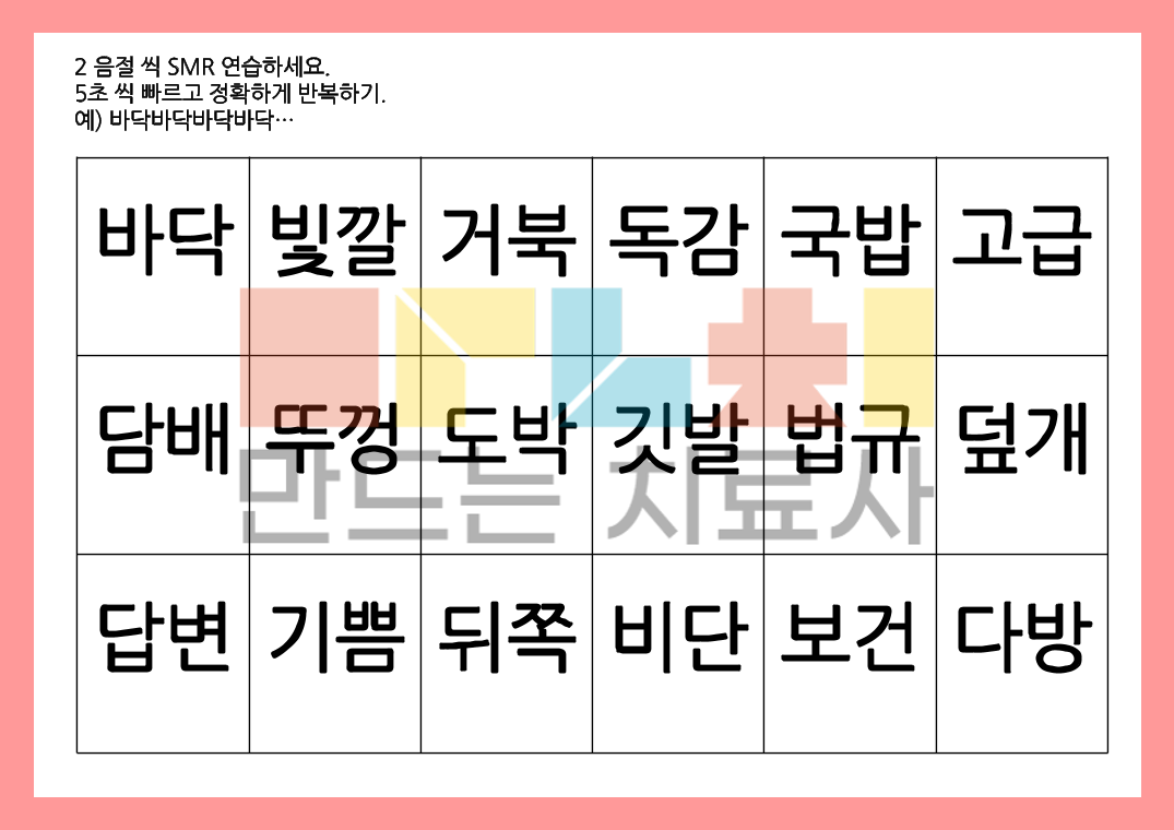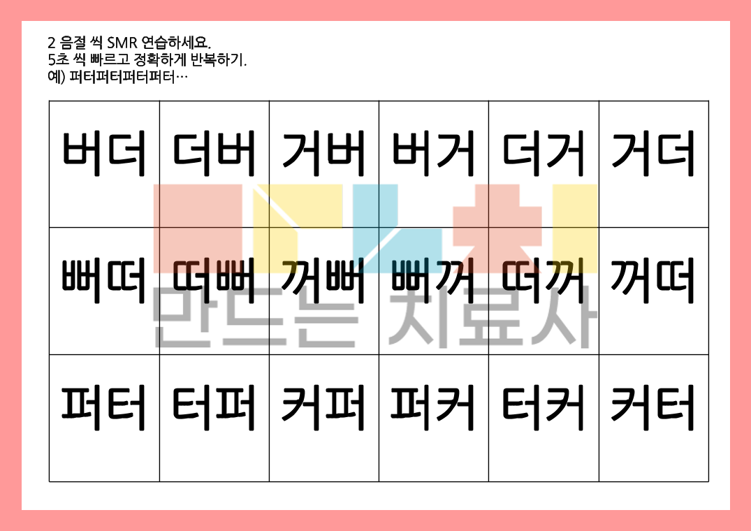 마비말장애, 조음음운장애 대상자를 위한 교대운동 연습 활동지 입니다. 성인부터 학령기까지 활용해보세요~