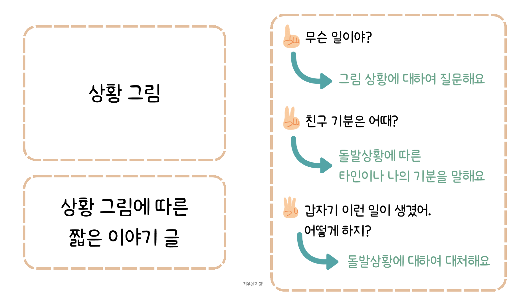 갑작스런 상황(돌발상황)에 대하여 다음과 같은 목표로 문제를 해결하는 연습을 목표로 한 활동지입니다. 1) 무슨 일인지 2) 타인이나 내 기분이 어떤지 3) 어떻게 해결해야 하는지