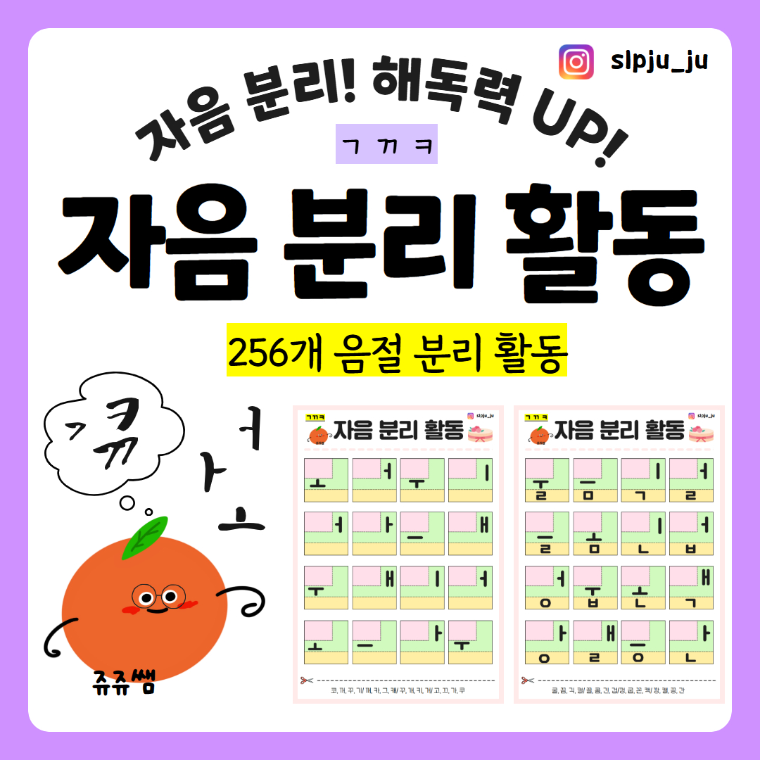 안녕하세요 쥬쥬쌤입니다. 자음과 모음을 분리해보며 글자의 구조를 익히는 자음 분리 활동지! 재미있게 조합하면서 자연스럽게 해독 능력과 음운 인식을 강화할 수 있어요 초등 저학년, 읽기 시작 단계 아동, 난독 아동에게 효과적!