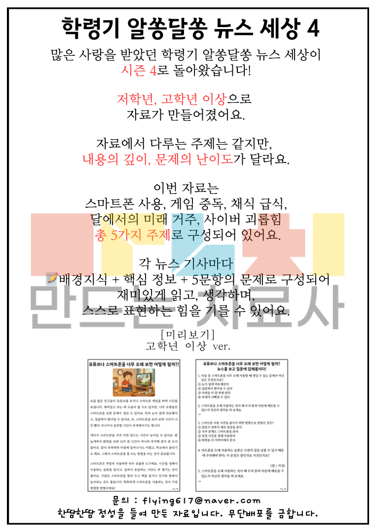 학령기 독해_알쏭달쏭 뉴스 세상4_고학년 이상