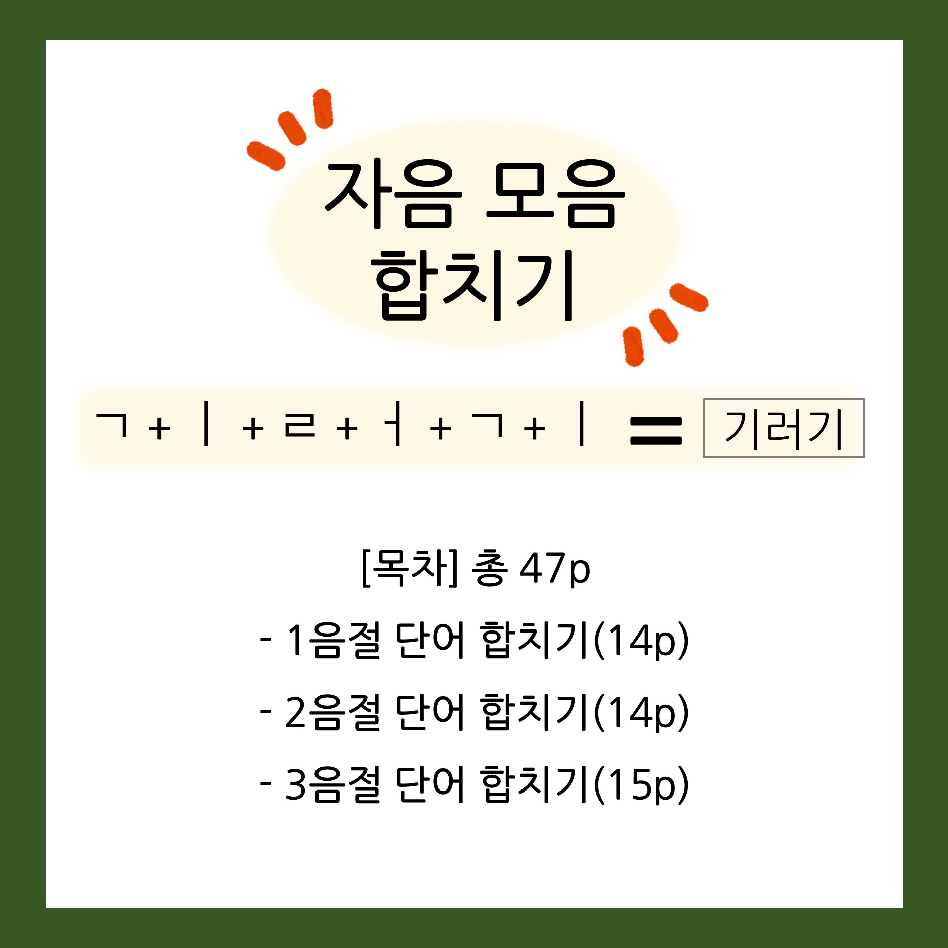CVC 구조의 1음절 단어부터 3음절 단어까지! 음소를 합쳐 단어를 만들어 음운인식 및 읽기/쓰기 과제로 활용해보세요!