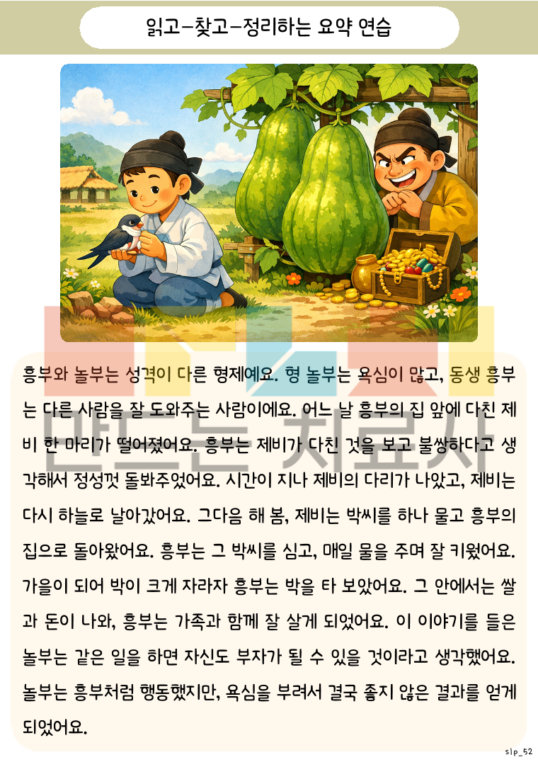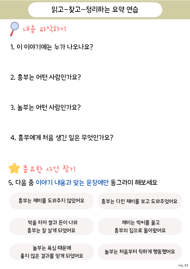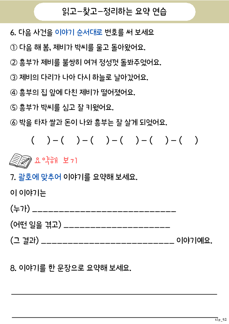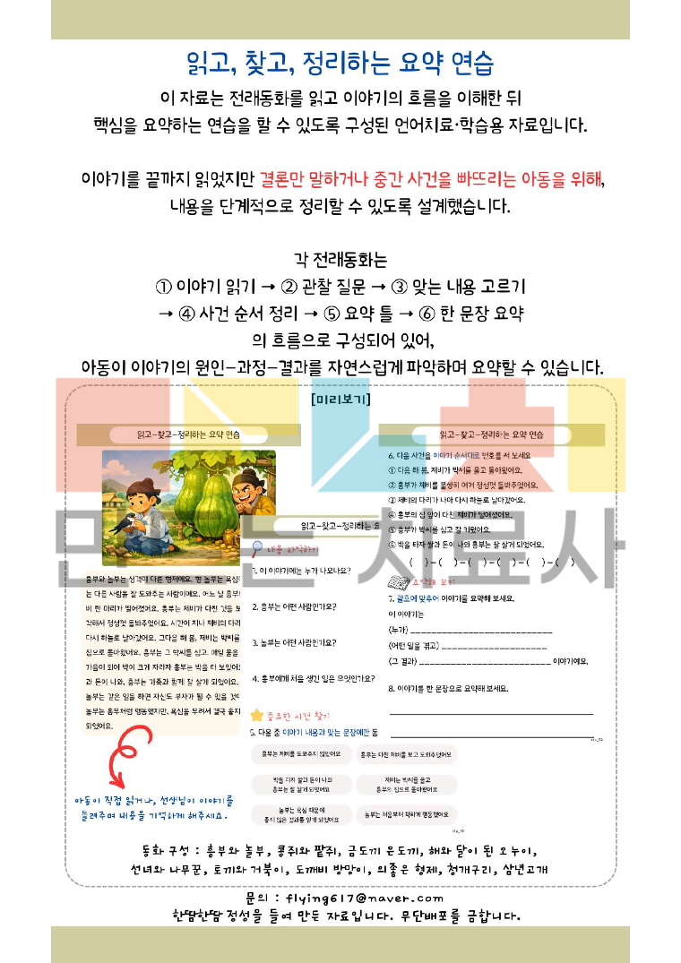 읽고, 찾고, 정리하는 요약연습(전래동화 읽고 내용 요약하기)