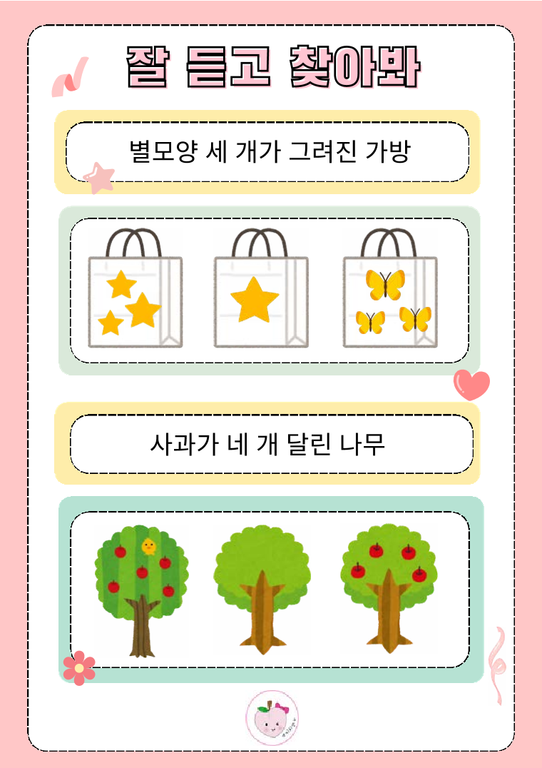 안녕하세요? 피치쌤입니다~! 이번 자료는 청각적 이해력 및 기억력 증진에 도움이 되는 내용으로 구성되어 있습니다~! 6페이지까지는 비교적 쉬운 내용이라서 대상자의 특성에 맞게 활용하시면 됩니다. 총 25P로 구성되어 있으며, 집중력 증진 및 정보처리 능력에도 도움을 줄 수 있습니다. 현장에서 유용하게 쓰이면 좋겠습니다. 문의사항이나 수정사항은 인스타 youandi_0022로 DM주세요. 감사합니다~!