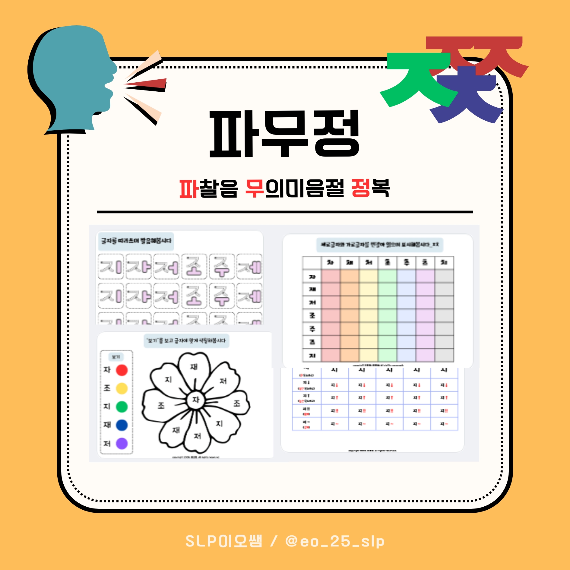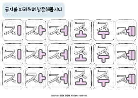 파찰음 [ㅈ,ㅊ,ㅉ] 무의미음절 수준에서 연습할 수 있는 활동지입니다 총 45장 구성입니다