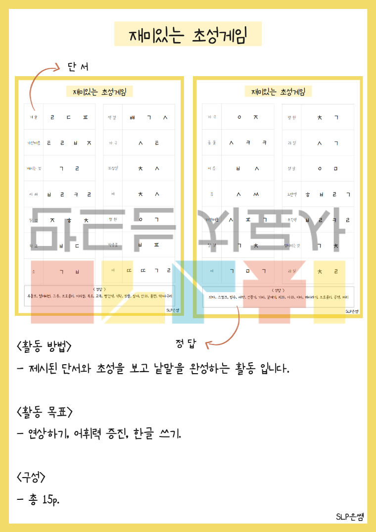 SLP은쌤의 재미있는 초성게임(낱말)2 입니다.