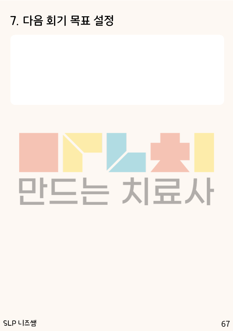 상품 형태 : PDF 파일 (구매 후 다운로드) 제작 : SLP 니즈쌤 총 페이지 수 : 67
