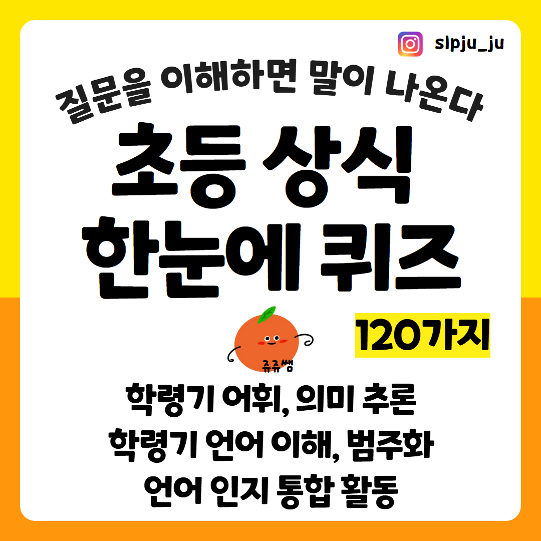 안녕하세요 쥬쥬쌤입니다. 일상 상식을 활용해 언어 이해력과 의미 추론 능력을 동시에 자극하는 구조화된 자료입니다. 문장 속 핵심 단서를 파악하여 어휘를 인출하게 도와줘요. 학령기 아동의 청각적 이해력, 어휘력, 질문 처리 속도 향상에 효과적입니다.