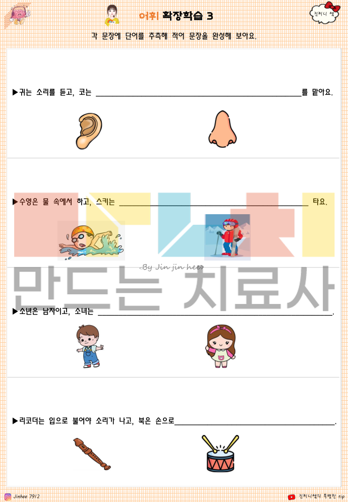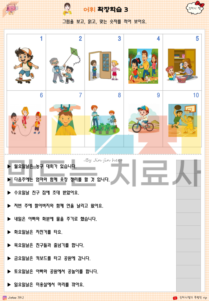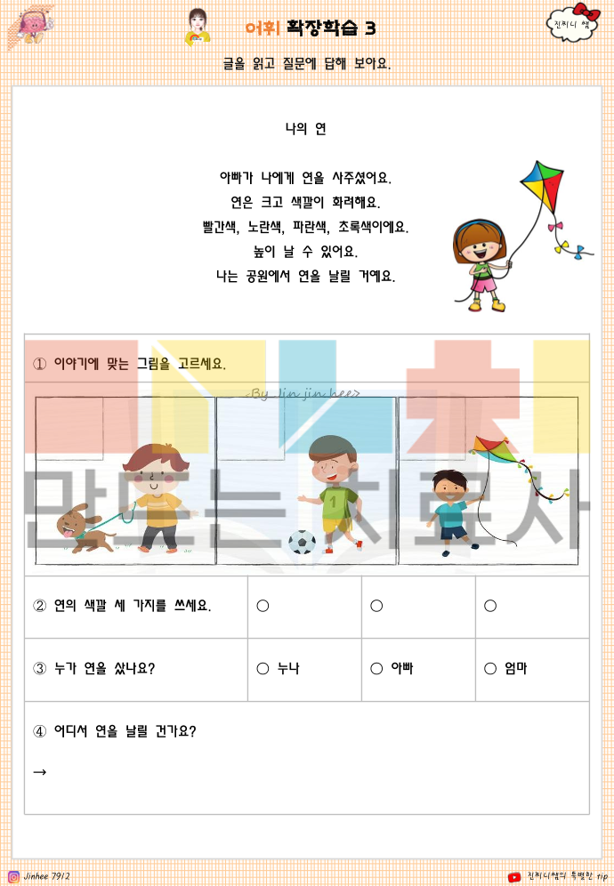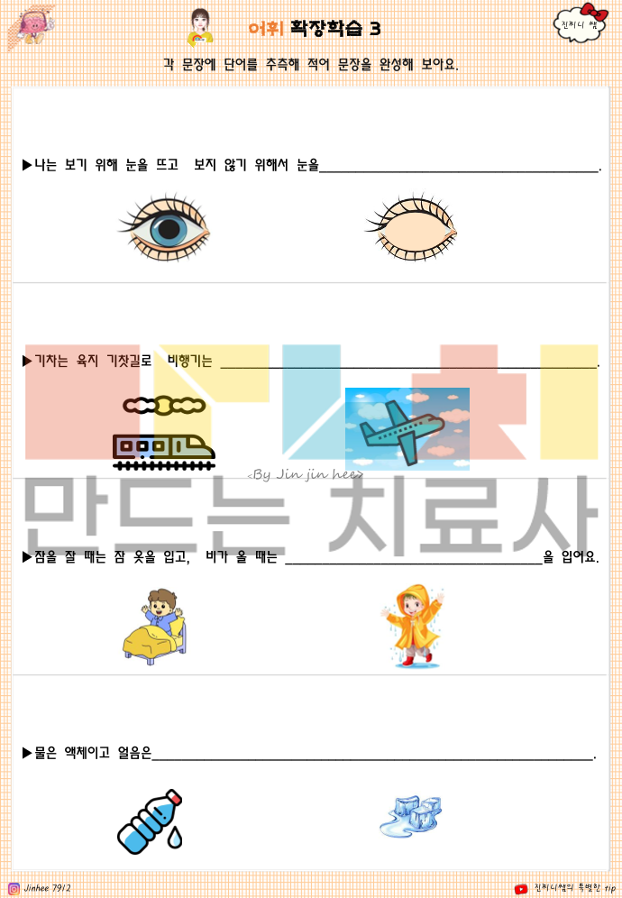 🔍 이 책으로 알 수 있는 것은 1. 어휘 이해 수준 -단어를 암기하는지, 의미를 이해하고 있는지 -같은 단어라도 상황에 따라 다르게 쓰는 이해력이 있는지 -추상 어휘(감정, 상태, 비교 개념 등)를 그림·문맥으로 연결할 수 있는지 2. 개념화 능력 -단어를 범주로 묶고(분류) 공통점을 찾을 수 있는지 -비슷한 말·반대되는 말의 차이를 인식하는지 -하나의 단어를 여러 맥락에서 확장해 생각할 수 있는지 3. 사고력 및 인지 확장 -단어를 통해 원인–결과, 전후 관계를 이해하는지 -상황 그림·문장을 보고 추론적 사고가 가능한지 -단어를 단서로 생각을 넓혀 문장으로 표현할 수 있는지 4. 언어 표현 능력 -단어를 단독으로 말하는 수준인지 -단어를 사용해 문장으로 설명할 수 있는지 -자신의 생각·느낌을 말로 조직화할 수 있는지 5. 생활 적용 가능성 -일상에서 자주 쓰이는 어휘를 상황에 맞게 사용하는지 -감정·요청·설명 등을 말로 표현할 수 있는 기반이 되는지 -학교·가정·또래 관계에서 의사소통의 기초 역할을 하는지 ✨ 한 줄 정리 (책의 핵심) 이 책은 ‘말을 아는 아이’가 아니라, ‘말로 생각하고 설명할 수 있는 아이’를 만드는 인지·어휘 학습서입니다. ^^