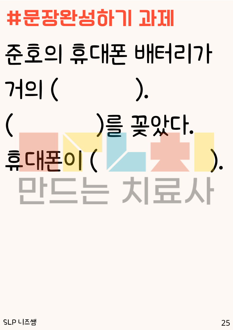 상품 형태 : PDF 파일 (구매 후 다운로드) 제작 : SLP 니즈쌤 총 페이지 수 : 151 * 성인 신경언어장애를 대상으로 제작하였습니다.