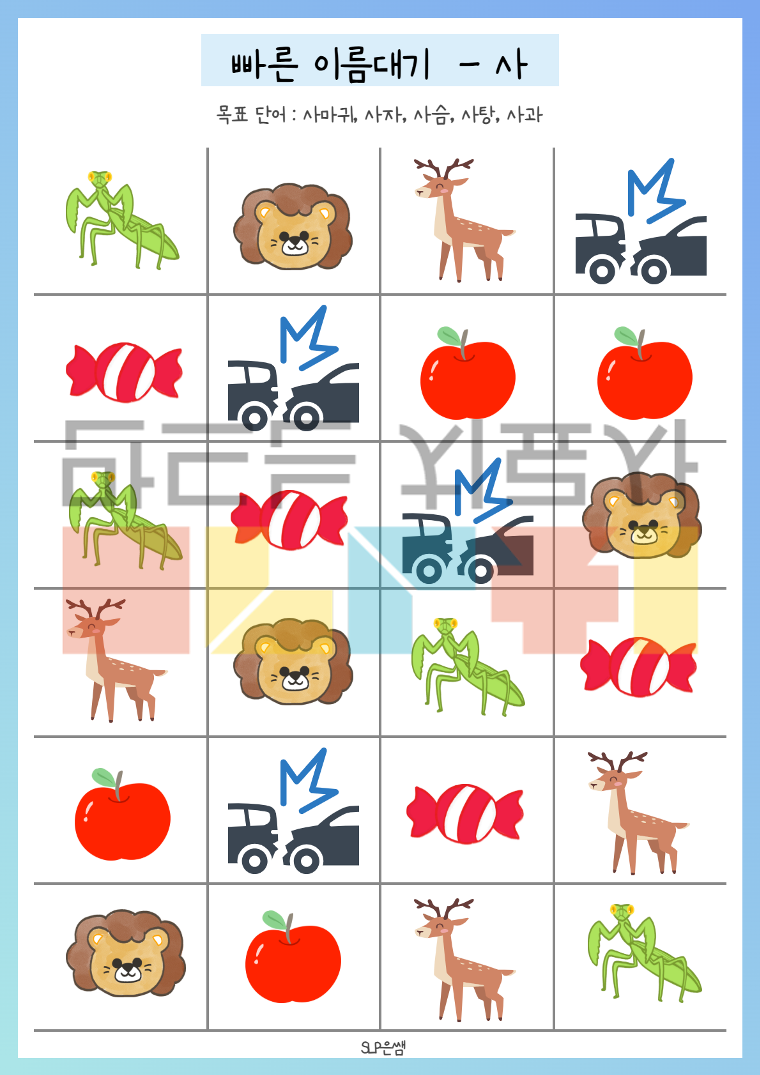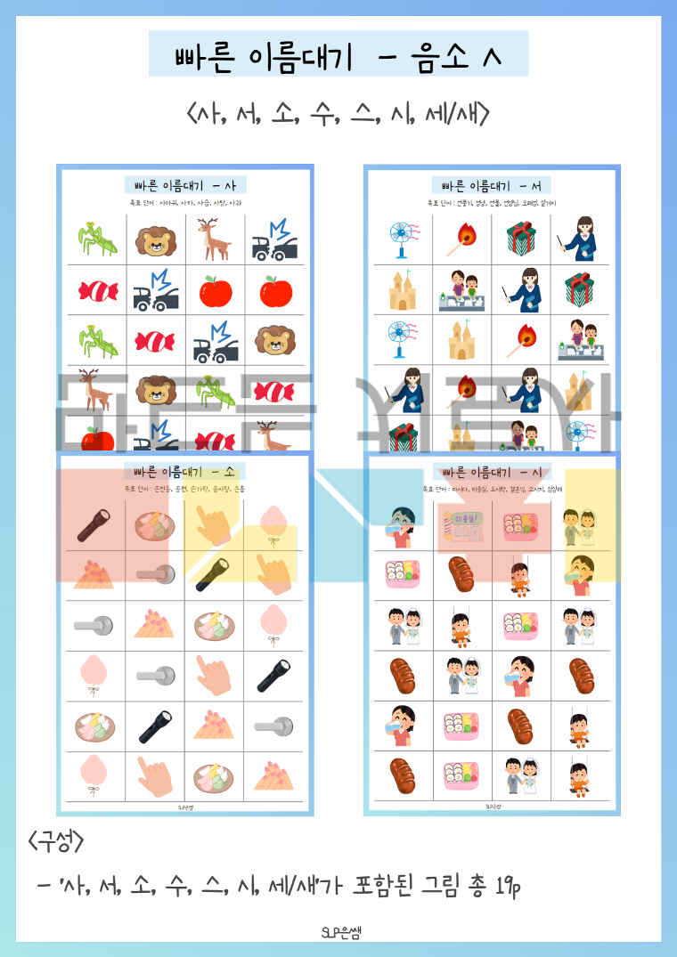 SLP은쌤의 빠른 이름대기3 세트(음소 ㅅ, ㅆ) 입니다.