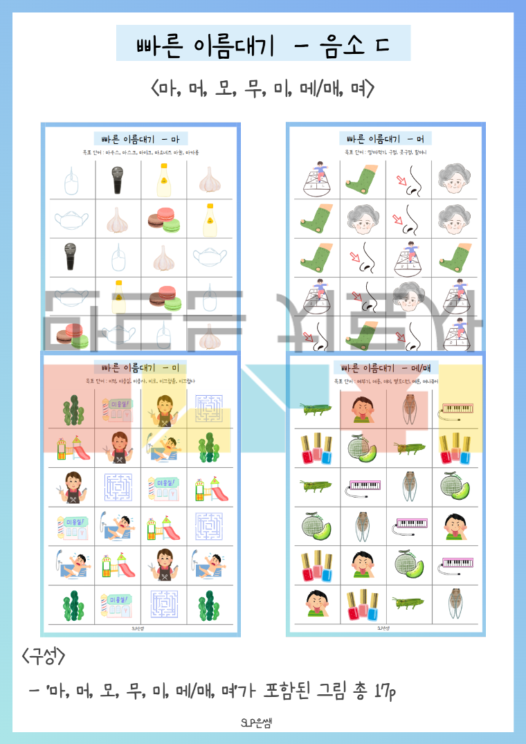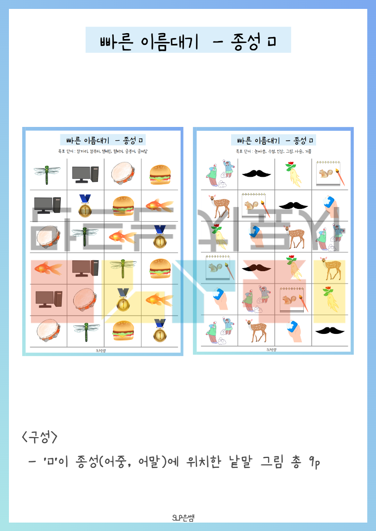SLP은쌤의 빠른 이름대기3 세트(초성, 종성 ㅁ) 입니다.