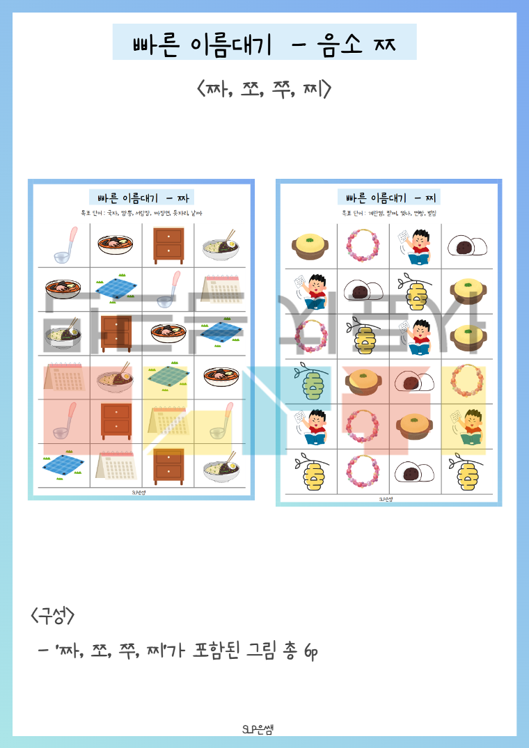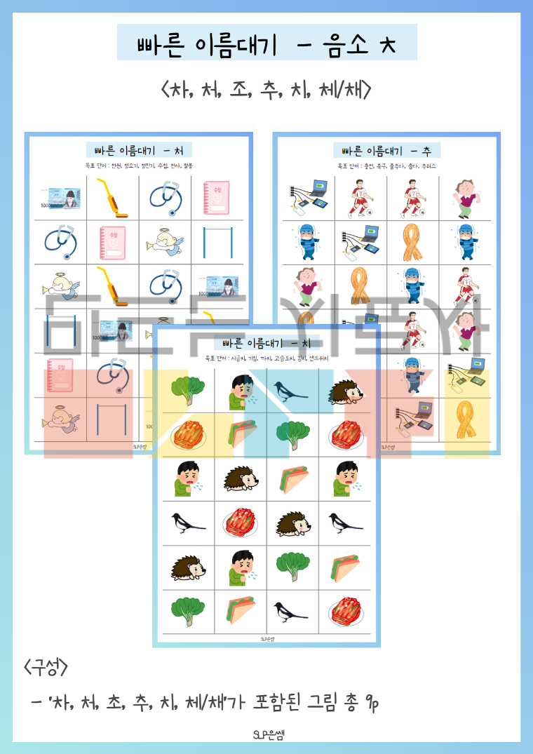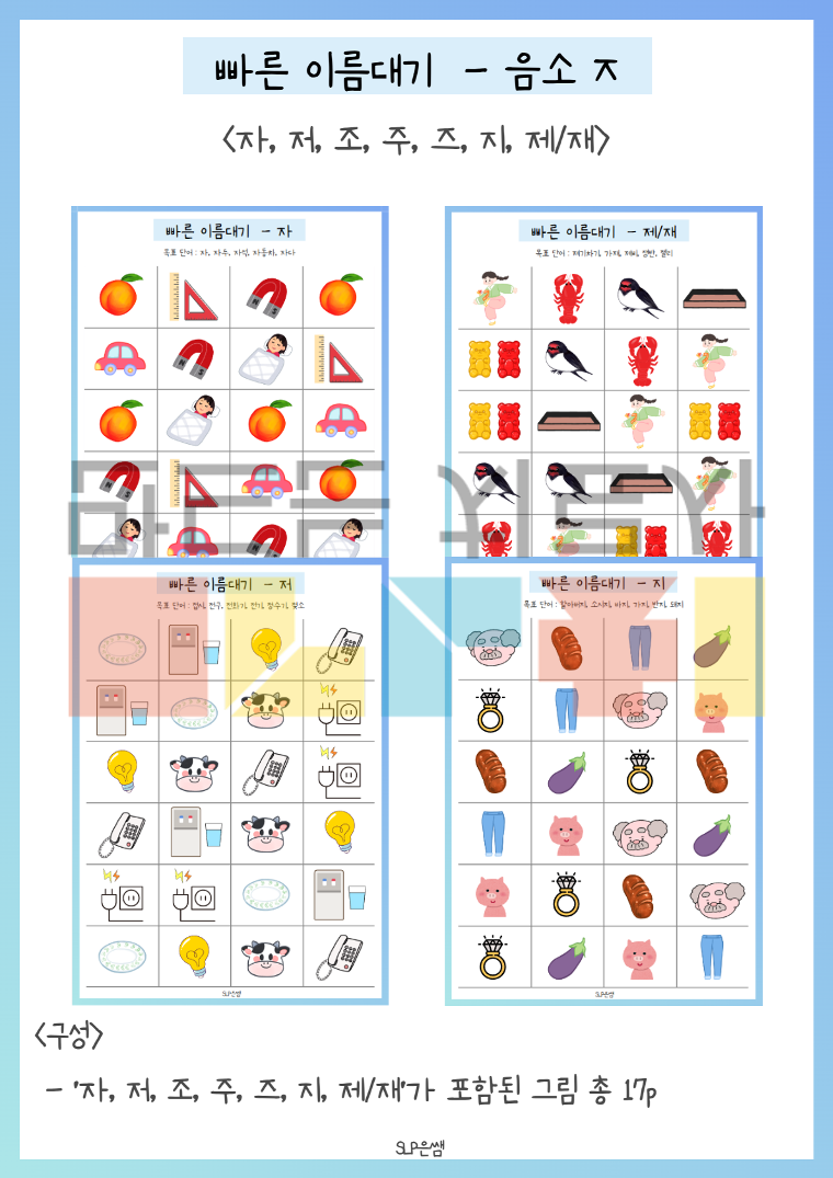SLP은쌤의 빠른 이름대기3 세트(음소 ㅈ,ㅊ,ㅉ) 입니다.