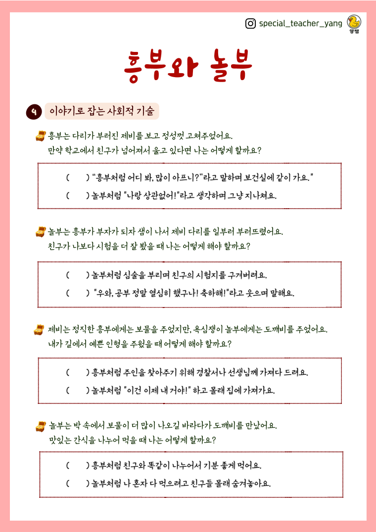 ★ 초등학교 저학년 수준의 동화를 읽고 상황 파악 및 등장인물의 감정을 파악하는 활동입니다. ★ 상황 인지의 첫걸음! 덥썩 시리즈로 함께 하세요!